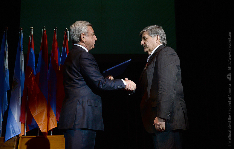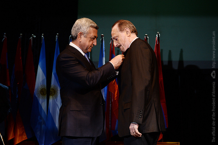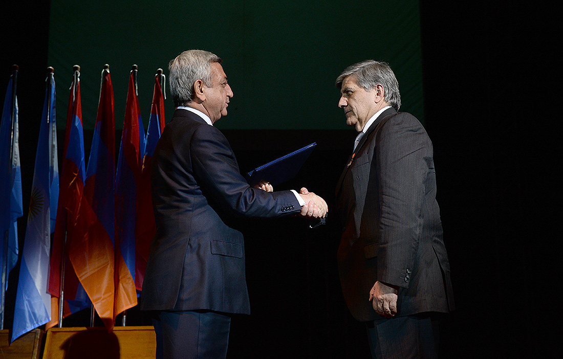 Հայրենիք-սփյուռք կապերի ամրապնդման, հայապահպանության գործում ներդրած նշանակալի ավանդի, ինչպես նաև ակտիվ հասարակական և բարեգործական գործունեության համար Արգենտինայի հայ համայնքի մի շարք գործիչներ և արգենտինացի բարեկամներ ՀՀ Նախագահի հրամանագրով պարգևատրվել են ՀՀ մեդալներով: Հանդիպման ժամանակ Նախագահ Սերժ Սարգսյանը հանձնել է ՀՀ պետական պարգևները, շնորհավորել պարգևատրվածներին և մաղթել հաջողություններ:
