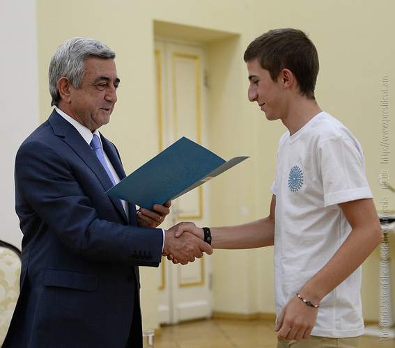 Ես վերջին մի քանի շաբաթների ընթացքում նմանօրինակ այլ շատ հաճելի պահեր եմ ունեցել, որովհետև ձեզնից մի քիչ կրտսերները ևս հաջողություններ և հաղթանակներ են ունեցել: Խոսքս վերաբերում է համաշխարհային դպրոցական առարկայական օլիմպիադաներին, որտեղ մեր երեխաները 15 մեդալ են շահել»,-ասել է Սերժ Սարգսյանը: