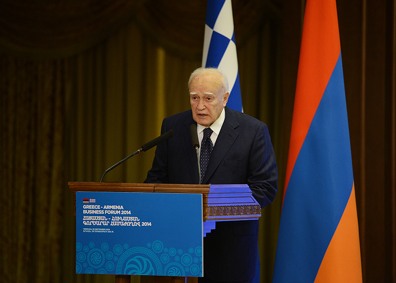 Նախագահ Սերժ Սարգսյանը և պետական այցով Հայաստանի Հանրապետությունում գտնվող Հունաստանի Հանրապետության Նախագահ Կարոլոս Պապուլիասն այսօր Երևանի «Արմենիա Մարիոթ» հյուրանոցում մասնակցել են հայ-հունական գործարար համաժողովին, որտեղ հանդես են եկել ողջույնի խոսքով: