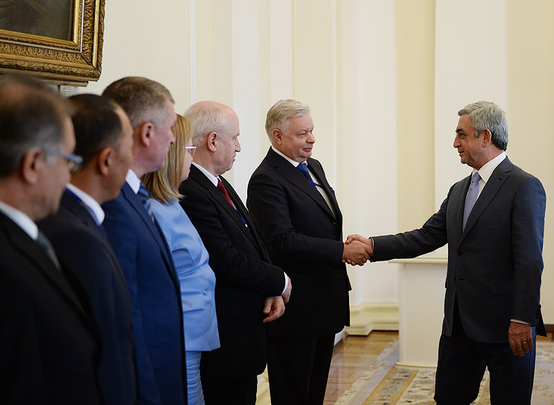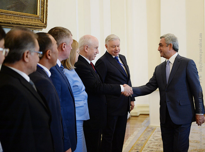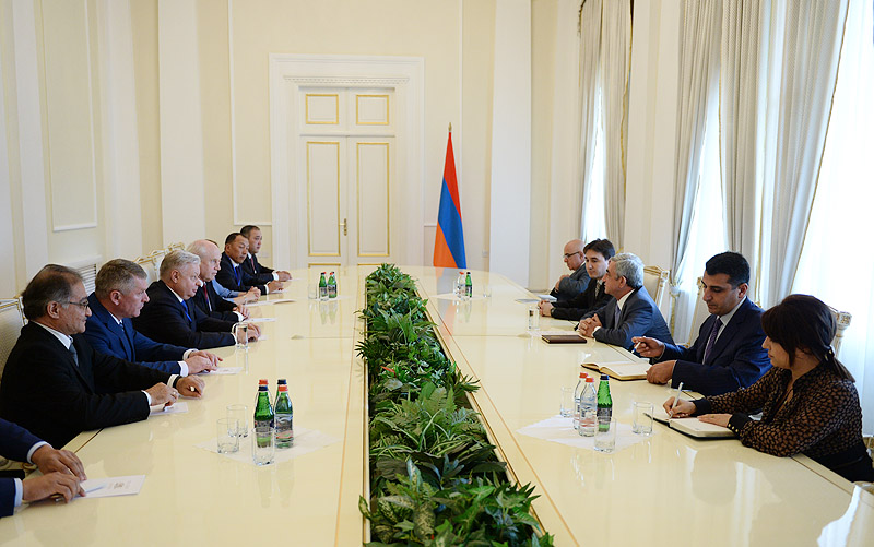 Նախագահ Սերժ Սարգսյանն այսօր ընդունել է Երևանում անցկացվող ԱՊՀ անդամ պետությունների միգրացիոն մարմինների ղեկավարների խորհրդի 16-րդ նիստի մասնակիցների պատվիրակությանը՝ խորհրդի նախագահ, ՌԴ դաշնային միգրացիոն ծառայության ղեկավար Կոնստանտին Ռոմոդանովսկիի գլխավորությամբ: