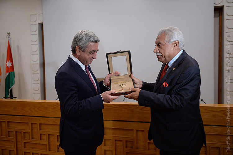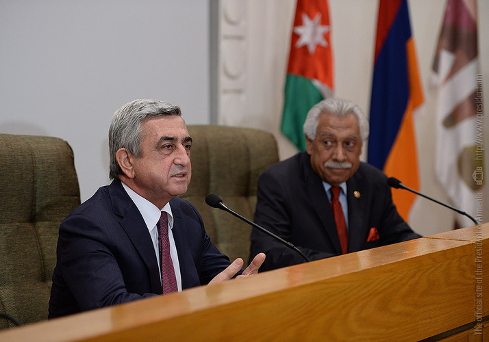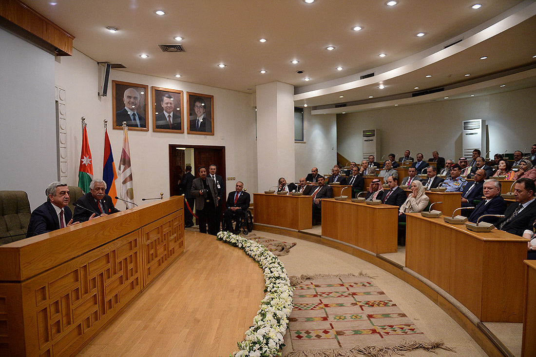 Նախագահը շնորհակալություն է հայտնել քաղաքապետ Բիլթաջիին՝ ջերմ ընդունելության համար և գոհունակությամբ խոսել իր պաշտոնական այցի շրջանակներում կայացած հայ-հորդանանյան բարձր մակարդակի բանակցությունների մասին՝ ընդգծելով, որ ի դեմս Հորդանանի Թագավոր Աբդալլահ Երկրորդի՝ հանդիպել է քաղաքական շատ լայն տեսադաշտ ունեցող ղեկավարի և անկեղծորեն ուրախ է, ուրախ է նաև Հայաստանի ու Հորդանանի՝ դարավոր պատմություն ունեցող բարեկամության համար: Ամմանի քաղաքապետարանում ևս Սերժ Սարգսյանը շնորհակալություն է հայտնել բարեկամ արաբ ժողովրդին՝ անցած դարասկզբին ցեղասպանության ենթարկված հայ ժողովրդի հարյուր հազարավոր զավակների կյանքը փրկելու և ապաստան տրամադրելու համար: Նախագահի խոսքով, հայերն այդ բարի վերաբերմունքին խորը հարգանքով և երախտագիտությամբ պատասխանեցին՝ իրենց ողջ հնարավորությունները ներդնելով այդ երկրների զարգացման գործում և ուրախ է, որ այդ մասին լսում է նաև Ամմանի հարգարժան քաղաքապետից: «Այսօր կրկնակի ուրախ եմ, որ Ամմանն ու Երևանը դարձան քույր քաղաքներ: Մենք սիրով սպասում ենք Ամմանի քաղաքապետի գլխավորած պատվիրակությանը մայրաքաղաք Երևանում»,-ասել է Նախագահ Սերժ Սարգսյանը: