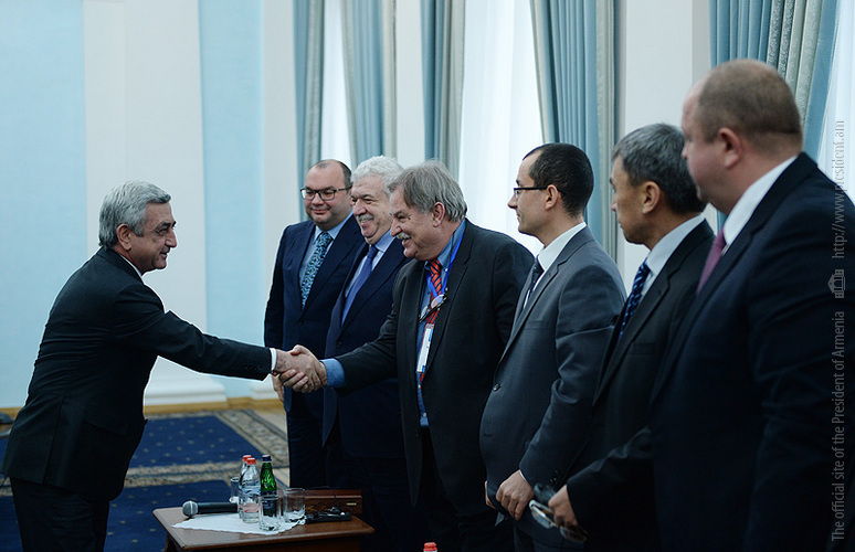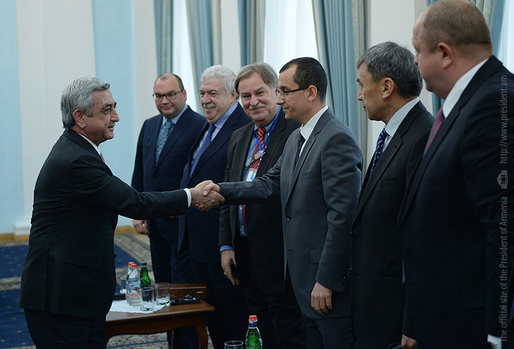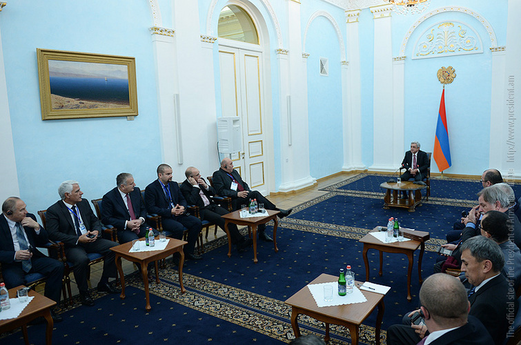 Նախագահը ողջունել է հանդիպման մասնակիցներին, ինչպես նաև հերթական նիստերը Երևանում անցկացնելու նրանց որոշումը: Սերժ Սարգսյանը կարևորել է նման հանդիպումները տեղեկատվական ոլորտում համագործակցությունը զարգացնելու տեսանկյունից: Ողջույնի խոսքում Հանրապետության Նախագահը հույս է հայտնել, որ առավել կամրապնդվեն ու կխորանան նաև «Արմենպրես» պետական գործակալության և Սևծովյան տարածաշրջանի ու ԱՊՀ երկրների առաջատար լրատվական գործակալությունների բարձր մակարդակի գործընկերային ու բարեկամական հարաբերությունները: Ընդգծելով, որ աշխարհում սրընթաց զարգանում են տեղեկատվական տեխնոլոգիաները, և այդ թռիչքային զարգացումը բերում է տեղեկատվության ծավալի ու հասանելիության բարձրացման, Նախագահը դա համարել է մի կողմից մարտահրավեր, մյուս կողմից՝ մեծ հնարավորություն: Սերժ Սարգսյանն այդ համատեքստում խոսել է նաև մամուլի ազատության մասին՝ նշելով, որ Հայաստանում հավատում են, որ մամուլի ազատությունն ու տեղեկատվության հասանելիությունը ժողովրդավարության և քաղաքացիական հասարակության հենասյուներն են, և ղեկավարվելով այդ սկզբունքով՝ հնարավորություններ են ստեղծվում ազատ մամուլի լիարժեք դրսևորման համար: Նախագահի խոսքով, այդ ուղղությամբ Հայաստանում որոշակի դրական տեղաշարժեր կան, ինչն արձանագրում են նաև միջազգային հեղինակավոր կառույցները: