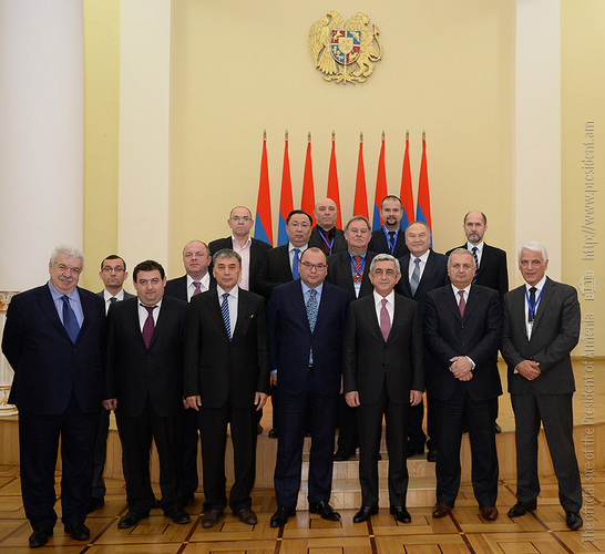 Նախագահ Սերժ Սարգսյանն այսօր ընդունել է Սևծովյան տարածաշրջանի և ԱՊՀ երկրների առաջատար լրատվական գործակալությունների ղեկավարներին, ովքեր Հայաստանում են տեղեկատվական համագործակցության զարգացման հեռանկարներն ու փոխգործակցության խորացման հարցերը քննարկելու նպատակով. տարածաշրջանի խոշորագույն գործակալությունների ներկայացուցիչներն այսօր Երևանում անցկացնում են իրենց հերթական՝ Մերձսևծովյան երկրների ազգային լրատվական գործակալությունների ասոցիացիայի գլխավոր ասամբլեայի 7-րդ և ԱՊՀ երկրների պետական լրատվամիջոցների ղեկավարների խորհրդի 19-րդ նիստերը:
