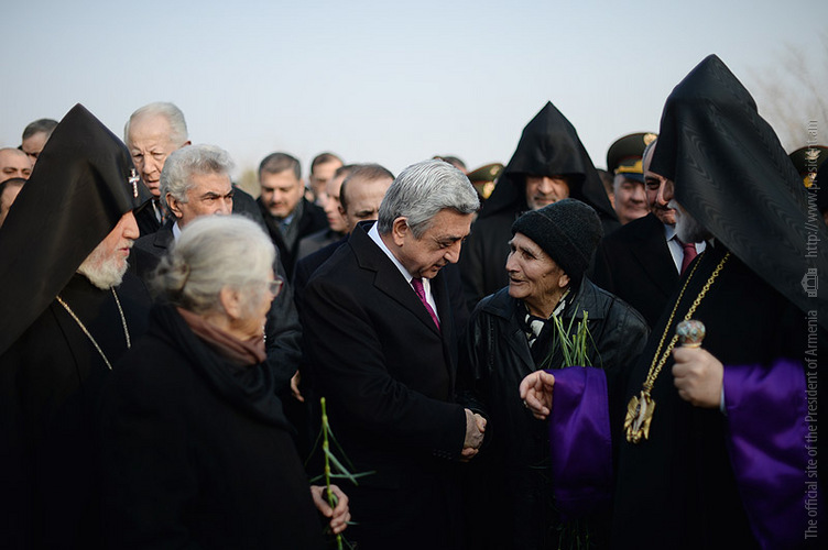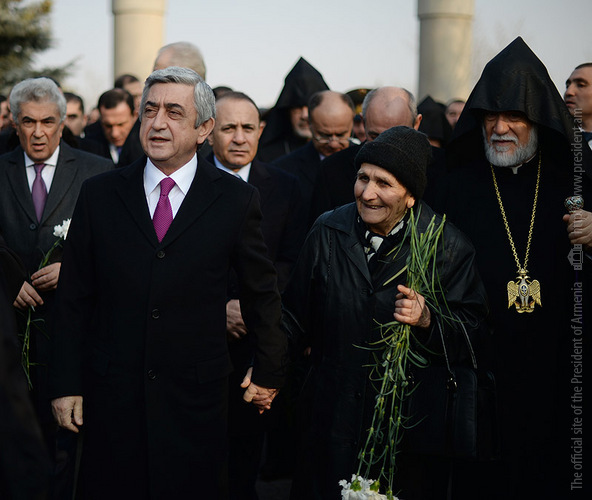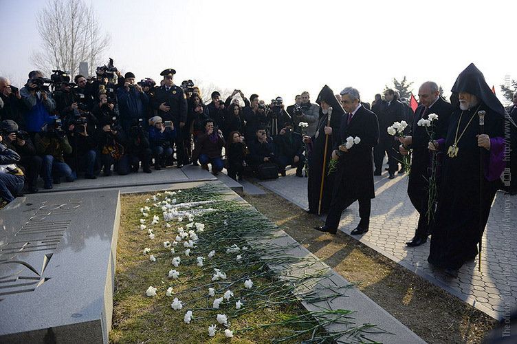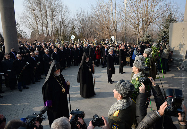 Բանակի օրվա առթիվ Նախագահ Սերժ Սարգսյանը ԼՂՀ նախագահ Բակո Սահակյանի, Ն.Ս.Օ.Տ.Տ. Գարեգին Բ Ծայրագույն Պատրիարք և Ամենայն Հայոց Կաթողիկոսի, Ն.Ս.Օ.Տ.Տ. Արամ Ա Մեծի Տանն Կիլիկիո Կաթողիկոսի հետ և ՀՀ բարձրագույն ղեկավարության ուղեկցությամբ այսօր այցելել է «Եռաբլուր» զինվորական պանթեոն և հարգանքի տուրք մատուցել իրենց կյանքը Հայրենիքի անկախության համար զոհաբերած հայորդիների հիշատակին: