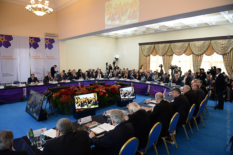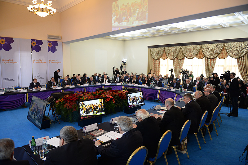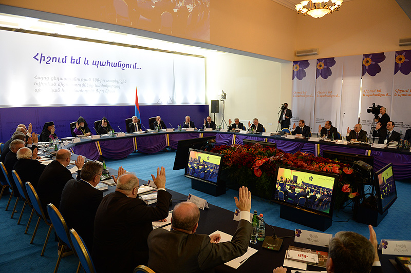 Այսօրվա նիստում նախատեսում ենք ընդունել Հայոց ցեղասպանության 100-րդ տարելիցի Համահայկական հռչակագիրը: Անշուշտ, սա կարևորագույն մի փաստաթուղթ է, որը բացառիկ է թե՛ իր ձևով, թե՛ բովանդակությամբ: Առաջին անգամ մենք ընդունում ենք համազգային նշանակության մի փաստաթուղթ ոչ թե պետական որևէ կառույցի միջոցով, ոչ թե մեր ազգի ներկայացուցիչների առանձնացված հատվածներով, այլ ողջ հայ ժողովուրդը ներկայացնող բոլոր հիմնական կառույցների ներգրավմամբ: