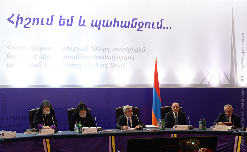 Նախագահ Սերժ Սարգսյանի խոսքը Հայոց ցեղասպանության 100-րդ տարելիցի միջոցառումները համակարգող պետական հանձնաժողովի 5-րդ նիստում