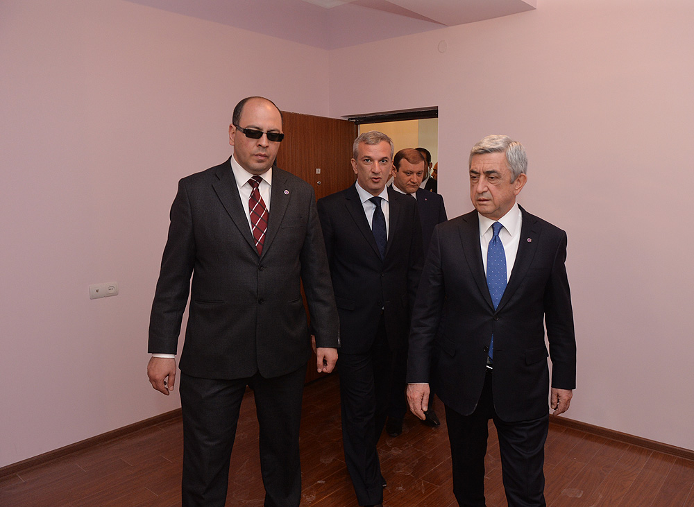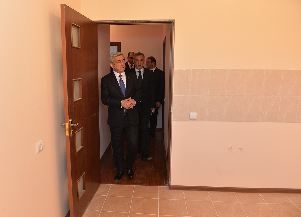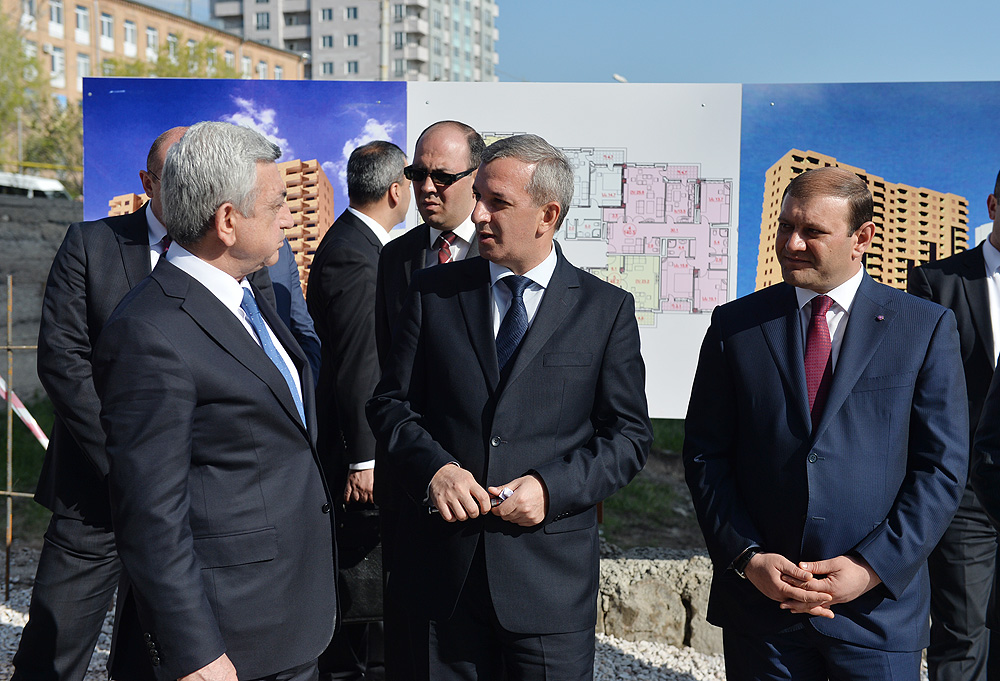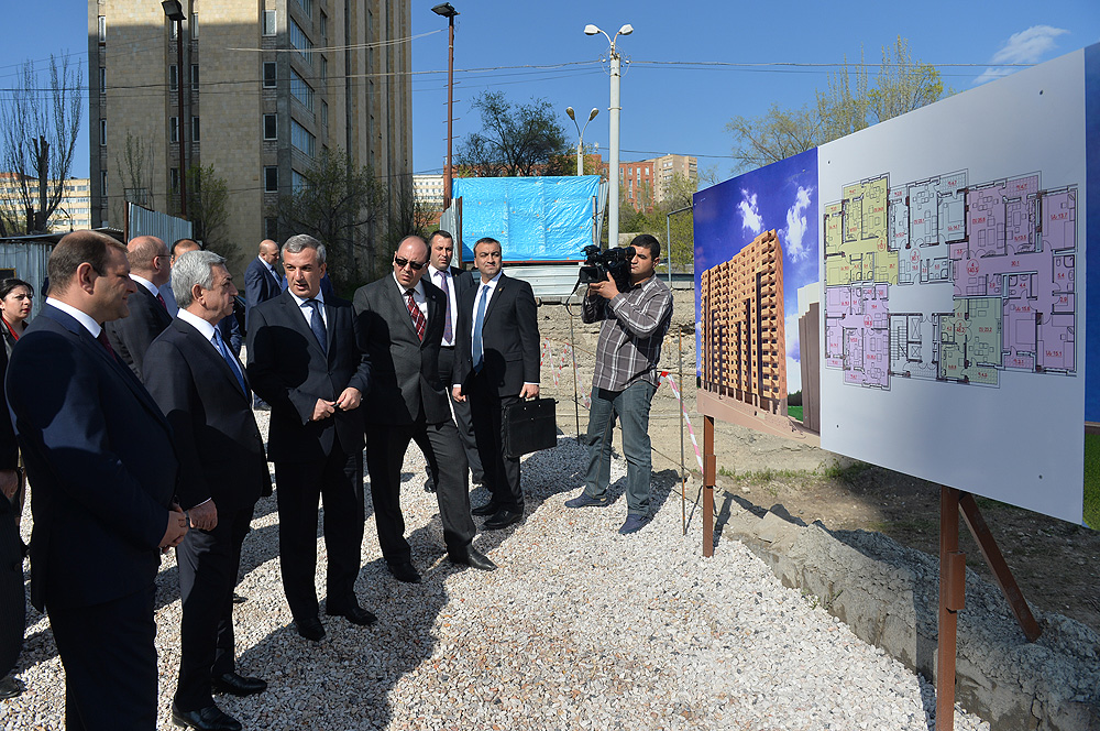ՀՀ Նախագահ, ԵՊՀ շրջանավարտների միավորման հոգաբարձուների խորհրդի նախագահ Սերժ Սարգսյանն այսօր մայրաքաղաքի Քանաքեռ-Զեյթուն վարչական շրջանում ծանոթացել է «ԵՊՀ շրջանավարտների միավորում» հասարակական կազմակերպության կողմից իրականացվող բնակարանային ապահովության սոցիալական ծրագրի իրականացման ընթացքին: Հանրապետության Նախագահը Երևանի քաղաքապետի, համայնքի ղեկավարի և ծրագրի պատասխանատուների ուղեկցությամբ այցելել է Պարույր Սևակի 8 և 8/1 հասցեներում «Մատչելի բնակարան երիտասարդ գիտնականներին և ստեղծագործական միությունների անդամներին» բնակարանային ապահովության ծրագրով կառուցվող «Զեյթուն 1» շենքային համալիրի տիպային բնակարաններ, այնուհետև ծանոթացել է հարակից տարածքում «Մատչելի բնակարան երիտասարդ մասնագետներին» բնակարանային ապահովության ծրագրով կառուցվող «Զեյթուն 2» համալիրի նախագծերին ու մեկնարկած շինարարական աշխատանքների ընթացքին: