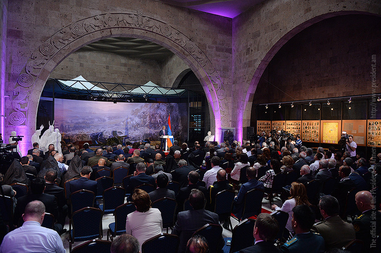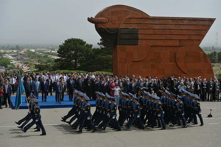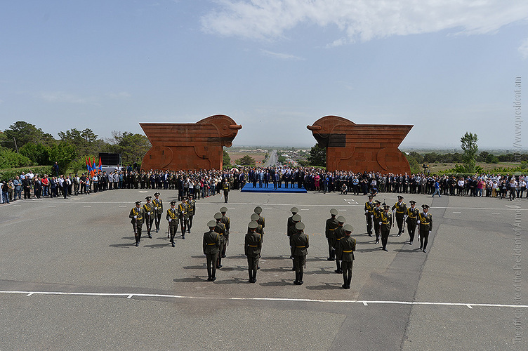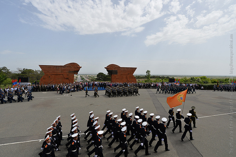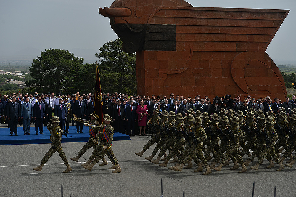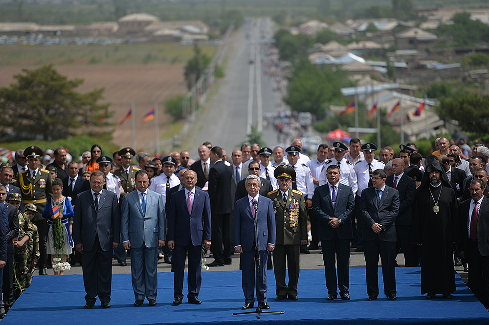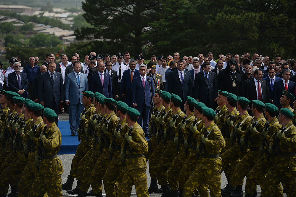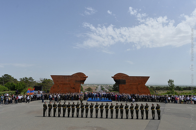 Նախագահ Սերժ Սարգսյանն այսօր Սարդարապատի հերոսամարտի հուշահամալիրում ՀՀ բարձրագույն ղեկավարության և հյուրերի հետ մասնակցել է Հանրապետության տոնին նվիրված տոնակատարությանը: Նախագահը ծաղկեպսակ է դրել Սարդարապատի ճակատամարտի հերոսների հիշատակը հավերժացնող հուշակոթողին և հարգանքի տուրք մատուցել: ՀՀ Նախագահ, զինված ուժերի գերագույն գլխավոր հրամանատար Սերժ Սարգսյանը ողջունել է տոնի կապակցությամբ անցկացված զորահանդեսի մասնակիցներին, շնորհավորել Հանրապետության տոնի առթիվ: Հանդիսության մասնակիցների հետ Նախագահն այնուհետև դիտել է տոնական մշակութային ծրագիրը: