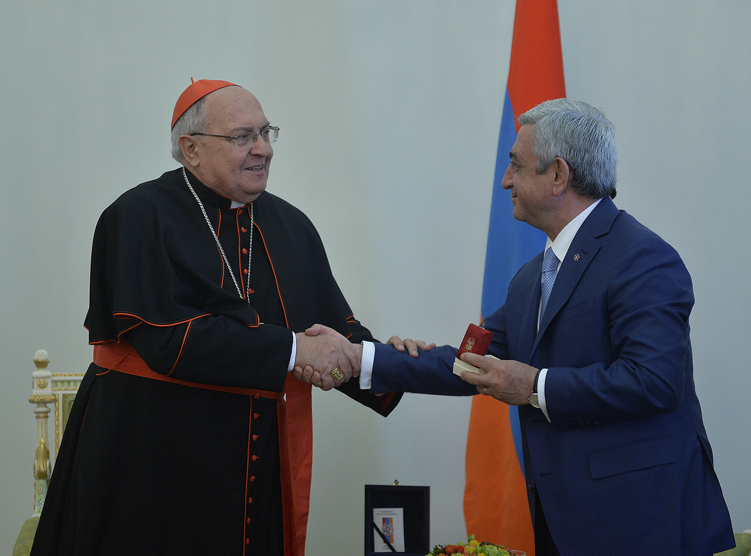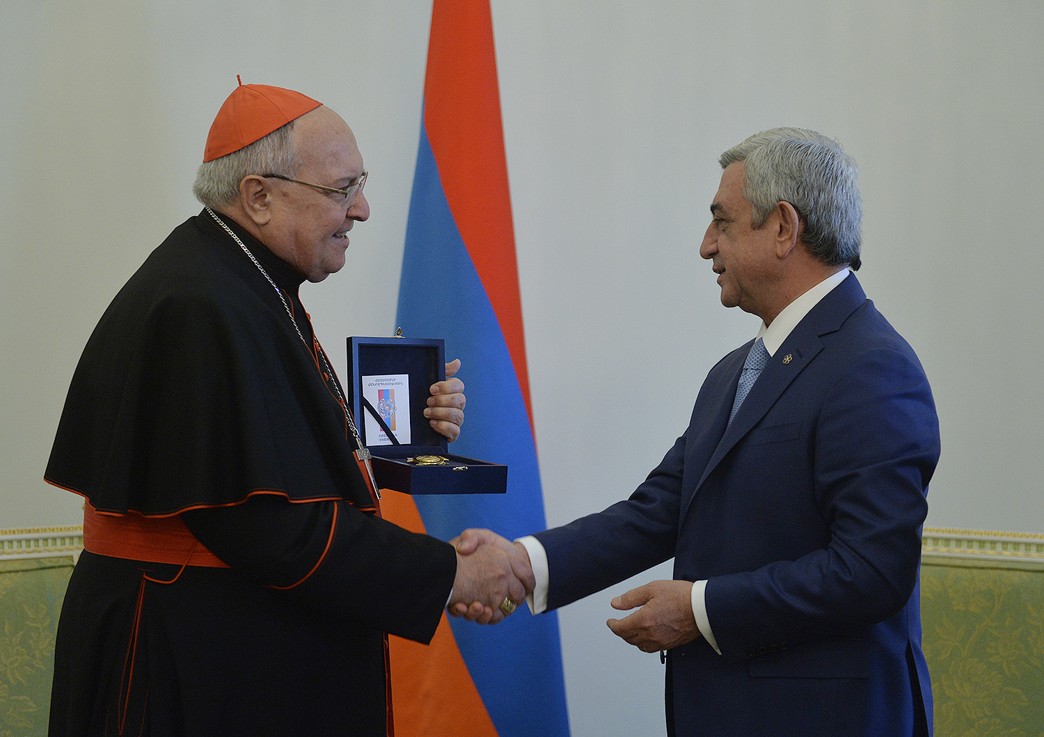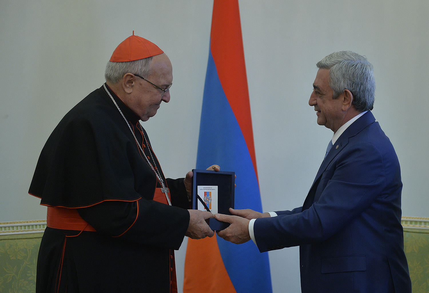 Հանդիպման ժամանակ Նախագահ Սերժ Սարգսյանը Սուրբ Աթոռի Արևելյան եկեղեցիների միաբանության պրեֆեկտ, կարդինալ Լեոնարդո Սանդրիին պարգևատրել է Բարեկամության շքանշանով՝ հոգևոր արժեքների պահպանման, Հայաստանի և Սուրբ Աթոռի միջև երկկողմ կապերի ամրապնդման գործում ներդրած նշանակալի ավանդի, ինչպես նաև հայանպաստ ակտիվ գործունեության համար: