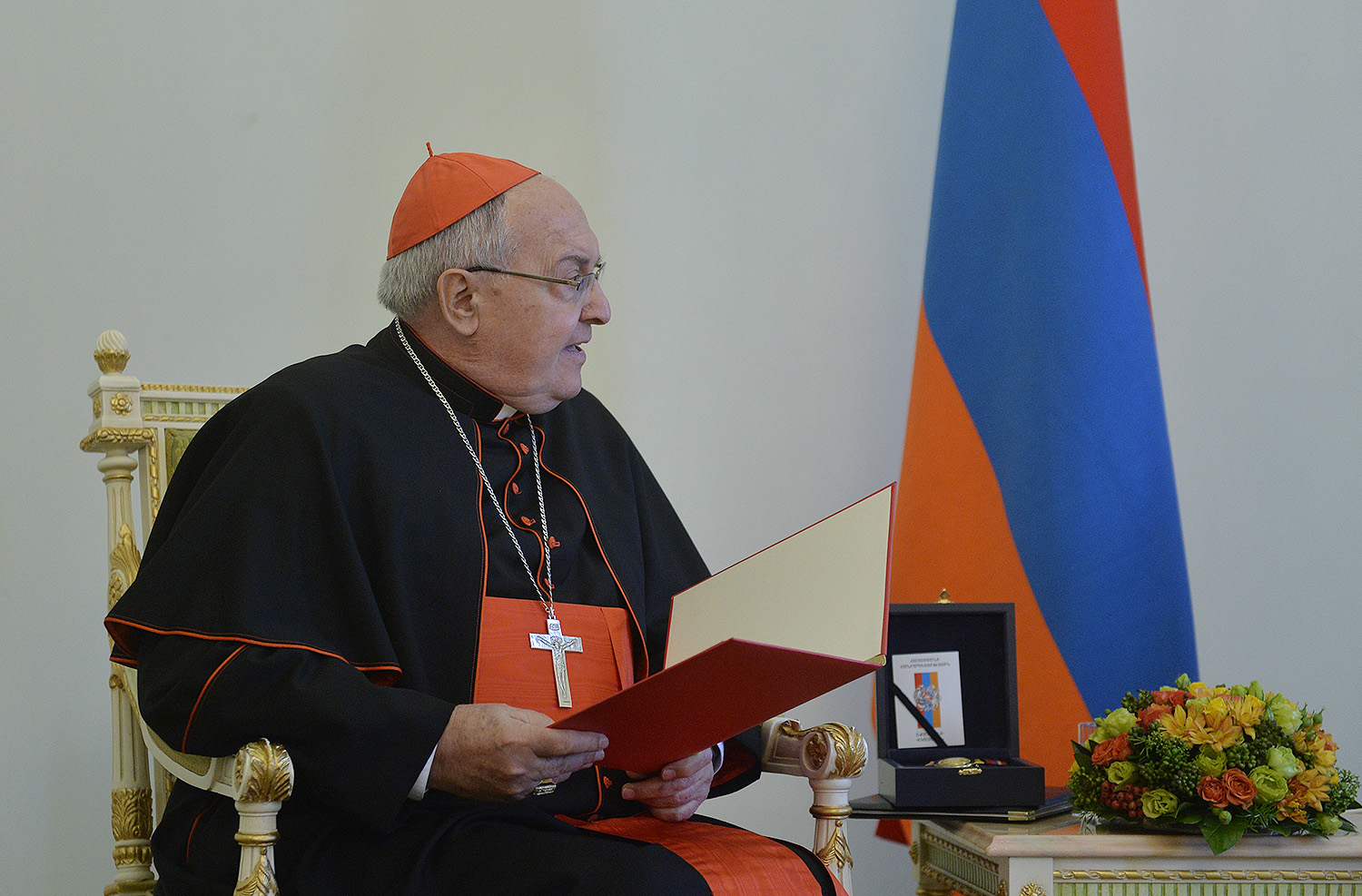 Կարդինալ Սանդրին ՀՀ Նախագահին է հանձնել Հռոմի Պապ Ֆրանցիսկոսի կողմից նրան շնորհված Ոսկե մեդալը: