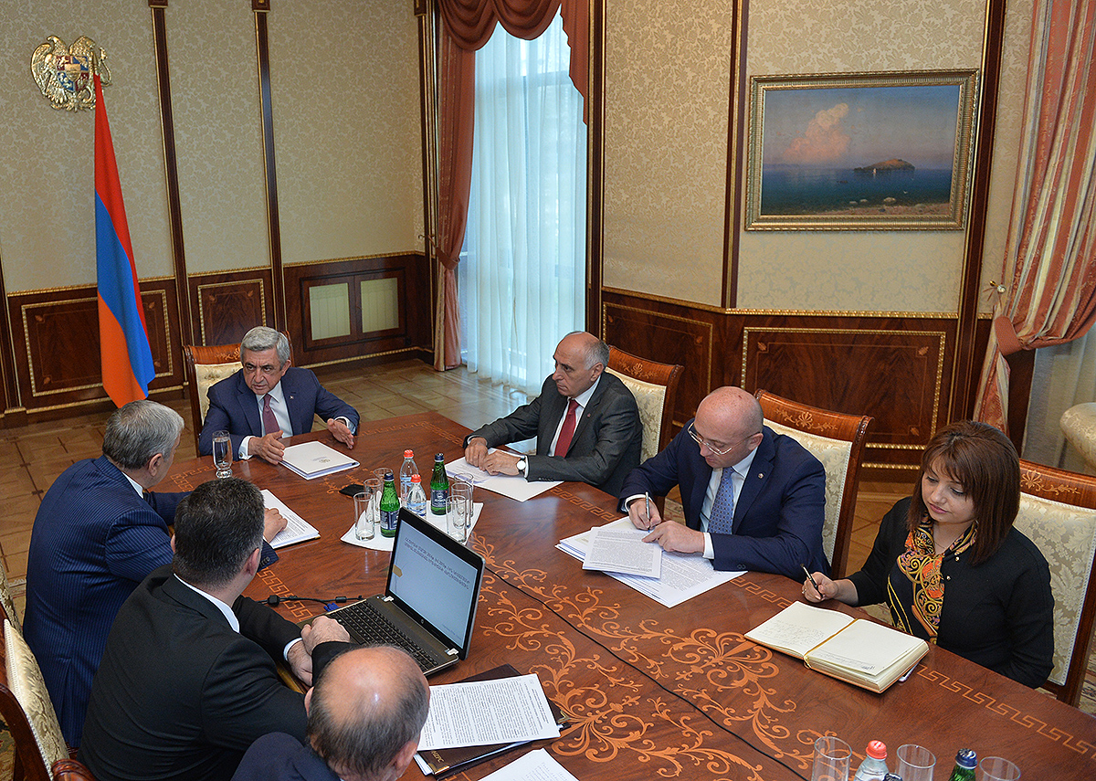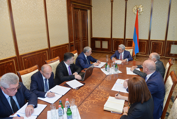 Նախագահ Սերժ Սարգսյանն այսօր Շիրակի մարզպետի և մարզպետարանի պատասխանատուների մասնակցությամբ խորհրդակցություն է անցկացրել Շիրակի մարզի 2014թ. և 2015թ. առաջին կիսամյակի սոցիալ-տնտեսական իրավիճակի, առկա հիմնախնդիրների և զարգացման ծրագրերի քննարկման նպատակով: