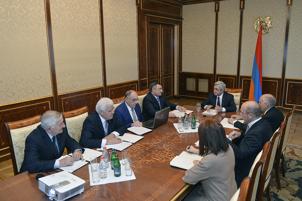 «Վայոց ձորը մեր հանրապետության ամենափոքր մարզերից մեկն է, իսկ բնակչության թվով՝ ամենափոքրը: Բայց սա չի նշանակում, որ մեր ուշադրությունը մարզի նկատմամբ պետք է լինի թերի կամ էլ Վայոց ձորում քիչ աշխատանքներ ունենք անելու, ամենևին՝ ոչ: Առաջին հերթին Վայոց ձորը մեր զբոսաշրջային և առողջարանային կենտրոններից մեկն է, որտեղ վերջին տարիներին շատ լուրջ աշխատանք է կատարվել՝ ենթակառուցվածքները զարգացնելու, նոր հյուրանոցներ կառուցելու, ճանապարհներ և այլն, և այս ուղղությամբ, իհարկե, աշխատանքները պետք է շարունակենք: Բայց նոր բարենպաստ հանգամանքներ են ի հայտ գալիս: Եվ այս հանգամանքները մենք պետք է օգտագործենք, որպեսզի չսահմանափակվենք միայն Ջերմուկի առողջարանային հնարավորություններով կամ էլ՝ Նորավանքի, Մոզրովի և Արենի քարանձավների հնարավորություններով: Որոնք են այդ նոր հանգամանքները. առաջին՝ մենք արդեն ունենք պայմանավորվածություն Համաշխարհային բանկի հետ և մոտակա տարիներին Հանրապետությունում ներդնելու ենք 55 մլն ԱՄՆ դոլարին համարժեք դրամ՝ զուտ զբոսաշրջության ոլորտը զարգացնելու նպատակով: Երկրորդ հանգամանքն այն է, որ Վայոց ձորի մարզով է անցնելու մեր կարևորագույն տրանսպորտային երակը՝ Հյուսիս-հարավ ճանապարհը, ծայրից ծայր մարզով է կտրելու-անցնելու: Եվ այս երկու հանգամանքը հնարավորություն է ընձեռում, որպեսզի մենք, այսպես ասած, ցանցային մոտեցում ցուցաբերենք զբոսաշրջությանը մարզում: Մարզը շատ հարուստ է պատմամշակութային հուշարձաններով, և եթե հիշողությունս ինձ չի դավաճանում, երեք տարի առաջ Վայոց ձորի թեմի առաջնորդն ասում էր, որ մարզում կան հազարից ավելի քրիստոնեական հուշարձաններ, իսկ փոքրիկ մարզում հազարից ավելի քրիստոնեական հուշարձաններ ունենալը պատմամշակութային մեծ արժեք է: Այս հանգամանքը հաշվի առնելով՝ կարծում եմ, շատ մեծ դժվարություն չի լավ տուրիստական երթուղիներ կազմակերպելը: Միջոցներն առկա են, հիմնական տրանսպորտային ուղիների խնդիրները մասամբ լուծվել են և լուծվելու են՝ վստահ եմ, որ առավելագույնը երեք-չորս տարիների ընթացքում այդ ճանապարհային խնդիրները լուծվելու են, և սա շատ մեծ հնարավորություններ է ընձեռում, որպեսզի մենք կարողանանք այս ոլորտը զարգացնել մարզում: Ձեզ համար, իհարկե, զբոսաշրջությունը զուտ միայն մարզը ցույց տալը չէ: Զբոսաշրջություն՝ նշանակում է նաև գյուղատնտեսական ապրանքների սպառում, նշանակում է ընդհանրապես կյանքի աշխուժացում, ծառայությունների զարգացում և այլն: Մի հանգամանք ևս հնարավորություն է տալիս շատ լուրջ ազդելու մարզի տնտեսական զարգացման վրա: Խոսքը Ամուլսարի ոսկու հանքերի պաշարների շահագործման մասին է: Եվ չնայած արդեն երկար տարիներ՝ երևի 8-9 տարի, խոսում ենք այդ հանգամանքի մասին, և ոչ միայն խոսում ենք, այլ նաև մեծ աշխատանք է կատարվել միջազգային բնապահպանական փորձաքննություններ անցկացնելու ուղղությամբ, կարծում եմ, որ արդեն մոտեցել է ժամանակը, երբ շահագործող ընկերությունը պատրաստ է 2016թ.-ի գարնանից սկսել գործարանի կառուցումը: Իսկ Վայոց ձորի համար դա նշանակում է հազարից ավելի լրացուցիչ աշխատատեղ, ինչը, կարծում եմ, նույնիսկ մի քիչ ավելին է լինելու, քան պահանջարկն է: Այս առումով, մարզպետը, մարզպետարանը, տեղական ինքնակառավարման մարմիններն ունեն երկու կարևորագույն խնդիր՝ Մշակույթի և Էկոնոմիկայի նախարարների հետ միասին մշակել տուրիզմի զարգացման ժամանակակից և արդյունավետ ծրագիր: Երկու նախարարներն էլ տեղյակ են, կարող եք հենց վաղվանից այդ ուղղությամբ աշխատել: Եվ երկրորդ՝ մենք բնապահպանական փորձաքննությունների վրա, իրոք, երկար ժամանակ ենք աշխատել՝ գործարանի տեղի ընտրման համար բոլոր միջազգային չափանիշներին համապատա