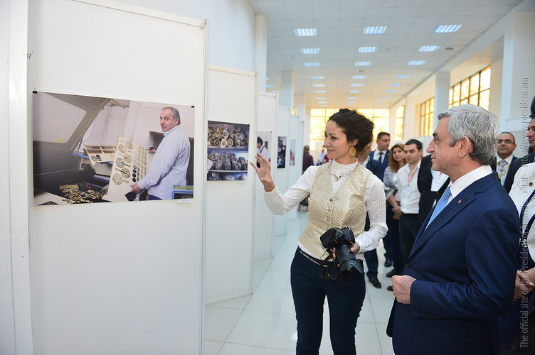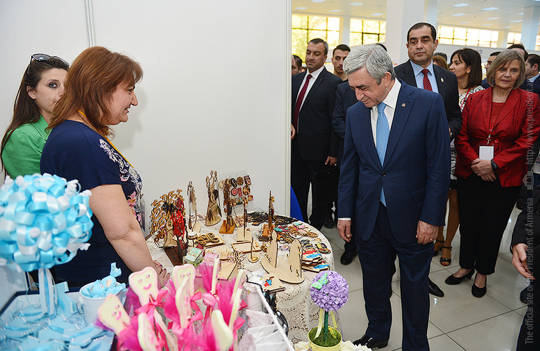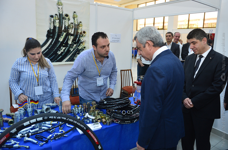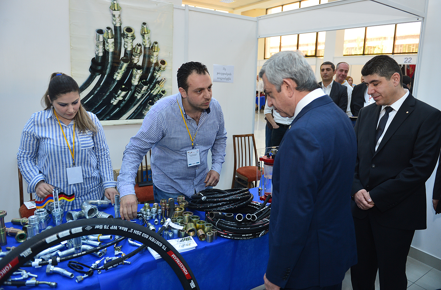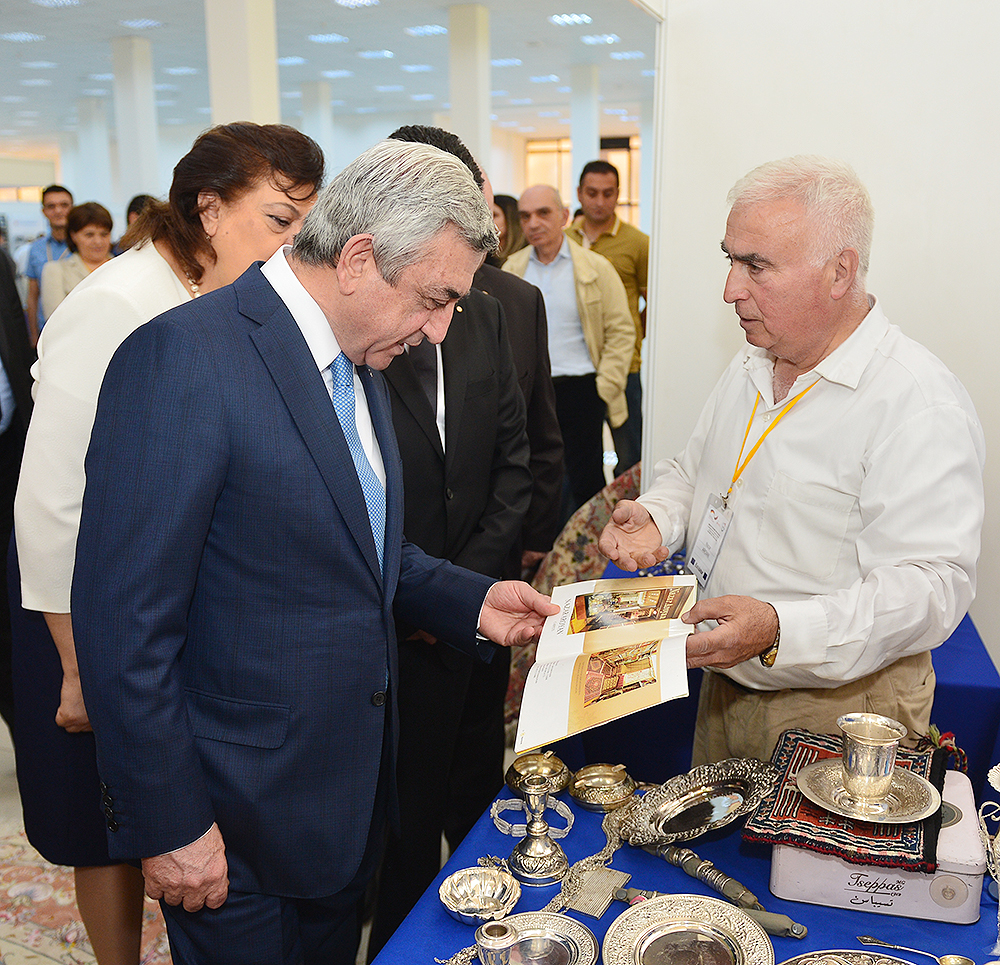 Հանրապետության Նախագահը ծանոթացել է տարբեր ոլորտներում բիզնես գործունեություն ծավալած սիրիահայերի աշխատանքի արդյունքին՝ ցուցահանդեսում ներկայացված արտադրատեսականուն և առաջարկվող ծառայությունների սպառման հնարավորություններին, ընթացիկ խնդիրներին ու զարգացման ծրագրերին: Հայաստանյան մասնավոր ձեռնարկությունները ցուցահանդեսում սիրիահայերին ներկայացնում են նաև իրենց մոտ առկա աշխատատեղերը և ծառայությունները, իսկ պետական ու միջազգային հաստատությունները՝ աջակցության իրենց ծրագրերը: Տպագրության, հրատարակչության, ոսկերչության, փայտամշակման, զբոսաշրջության, ասեղնագործության, սարքավորումների արտադրության, հաստոցաշինության և այլ ոլորտներում արտադրանք թողարկող մեր հայրենակիցների ջանքերը Սերժ Սարգսյանը ոգևորիչ է համարել և բարձր գնահատել ներկայացված ապրանքների որակական հատկանիշները: Նախագահը սիրիահայ ձեռներեցների հետ քննարկել է իրենց արտադրանքի իրացման և արտահանման հնարավորություններին վերաբերող հարցեր:
