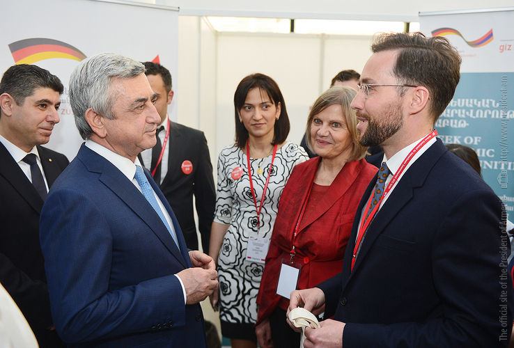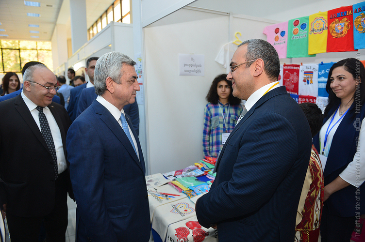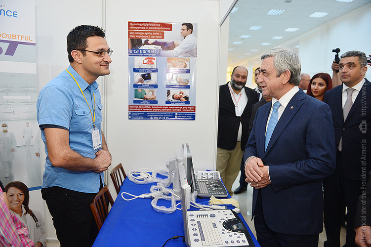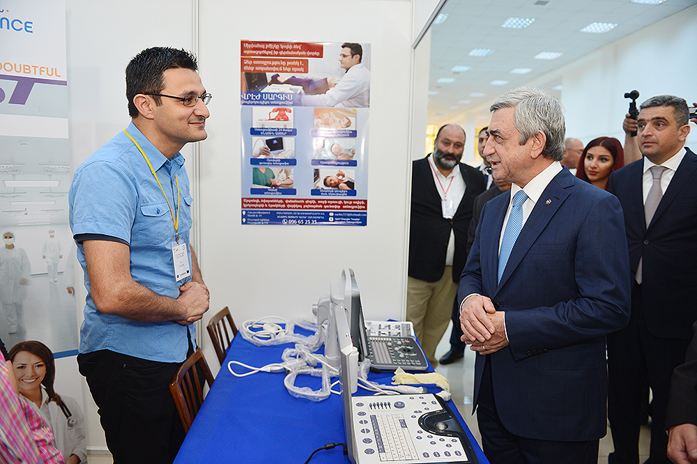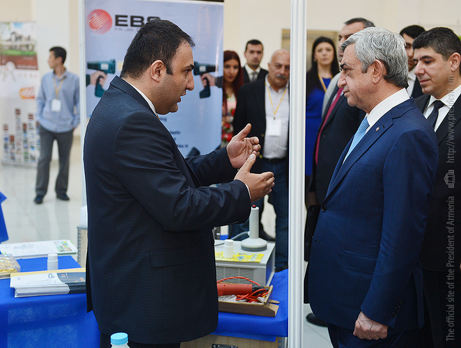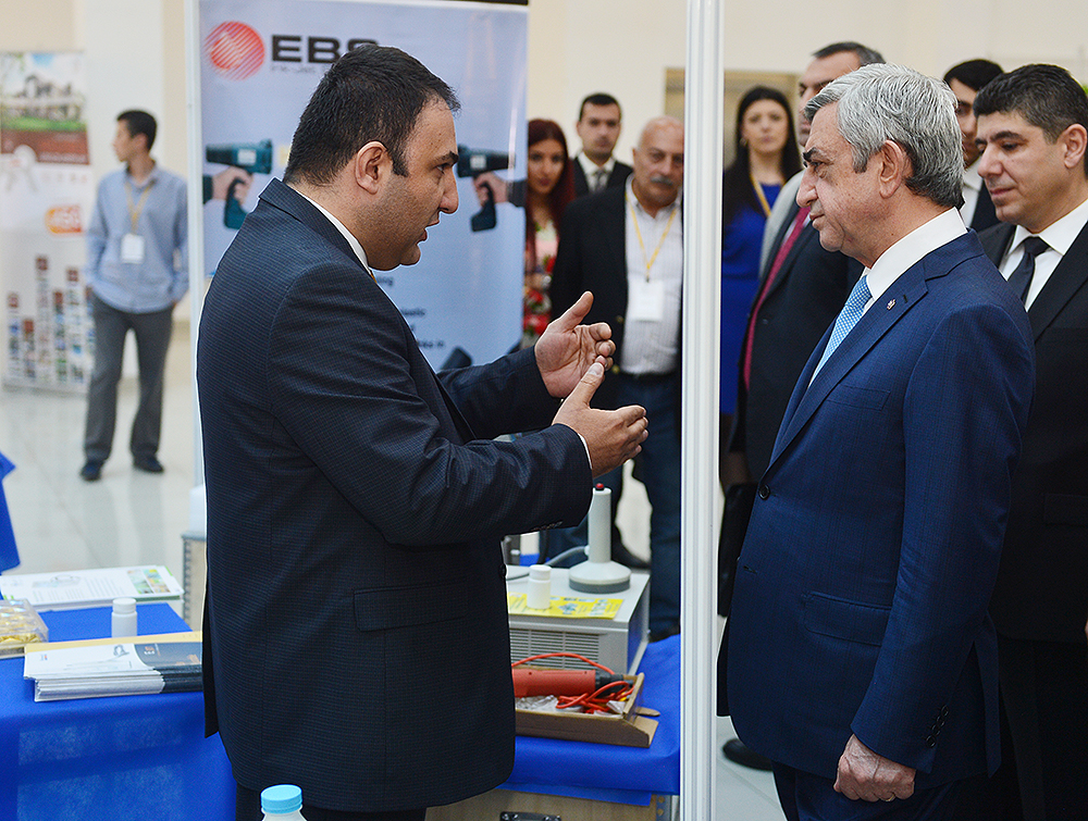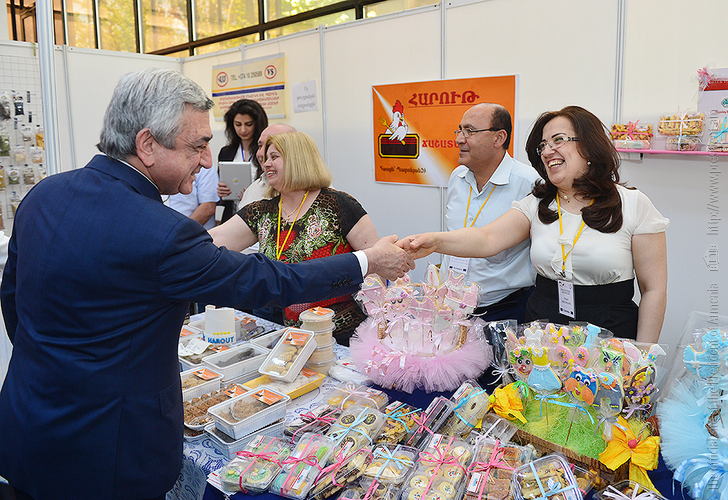 Հանրապետության Նախագահը ծանոթացել է տարբեր ոլորտներում բիզնես գործունեություն ծավալած սիրիահայերի աշխատանքի արդյունքին՝ ցուցահանդեսում ներկայացված արտադրատեսականուն և առաջարկվող ծառայությունների սպառման հնարավորություններին, ընթացիկ խնդիրներին ու զարգացման ծրագրերին: Հայաստանյան մասնավոր ձեռնարկությունները ցուցահանդեսում սիրիահայերին ներկայացնում են նաև իրենց մոտ առկա աշխատատեղերը և ծառայությունները, իսկ պետական ու միջազգային հաստատությունները՝ աջակցության իրենց ծրագրերը: Տպագրության, հրատարակչության, ոսկերչության, փայտամշակման, զբոսաշրջության, ասեղնագործության, սարքավորումների արտադրության, հաստոցաշինության և այլ ոլորտներում արտադրանք թողարկող մեր հայրենակիցների ջանքերը Սերժ Սարգսյանը ոգևորիչ է համարել և բարձր գնահատել ներկայացված ապրանքների որակական հատկանիշները: Նախագահը սիրիահայ ձեռներեցների հետ քննարկել է իրենց արտադրանքի իրացման և արտահանման հնարավորություններին վերաբերող հարցեր: