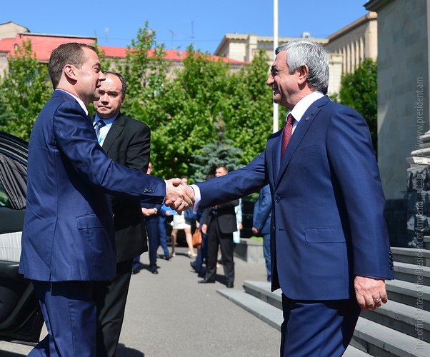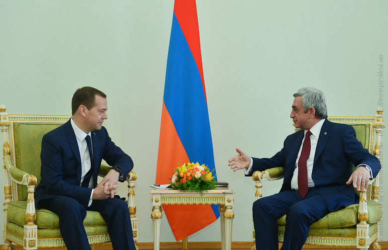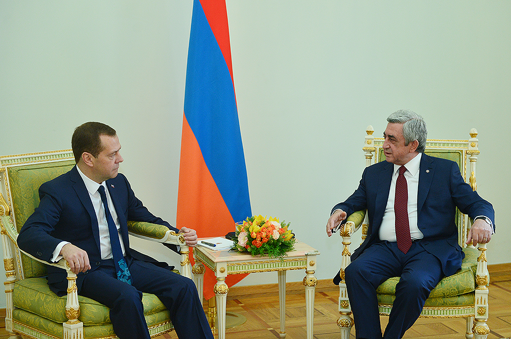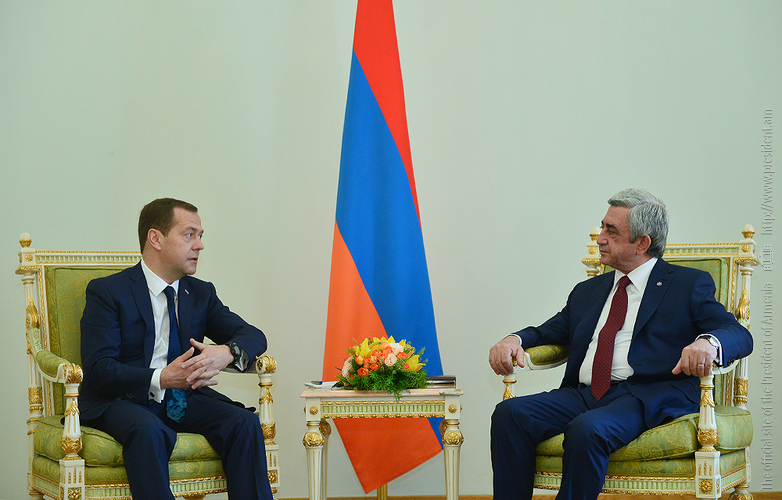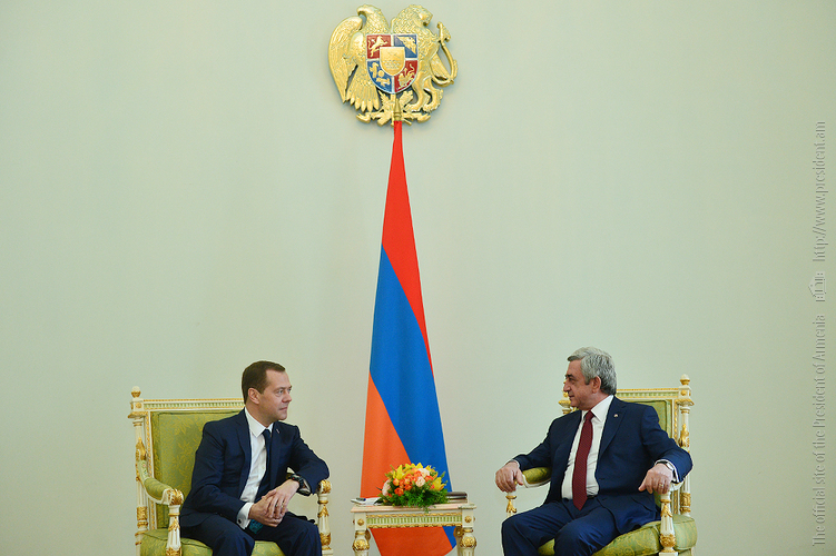 Նախագահ Սերժ Սարգսյանն այսօր ընդունել է Ռուսաստանի Դաշնության կառավարության նախագահ Դմիտրի Մեդվեդևին, ով Հայաստան է ժամանել Եվրասիական միջկառավարական խորհրդի հերթական նիստին մասնակցելու նպատակով:
