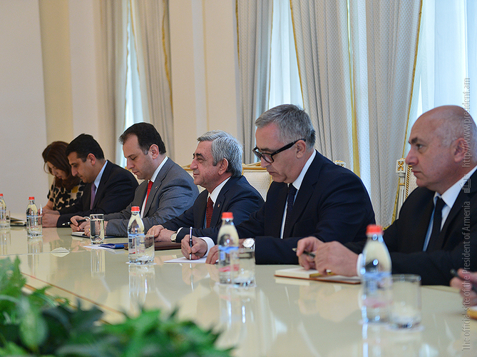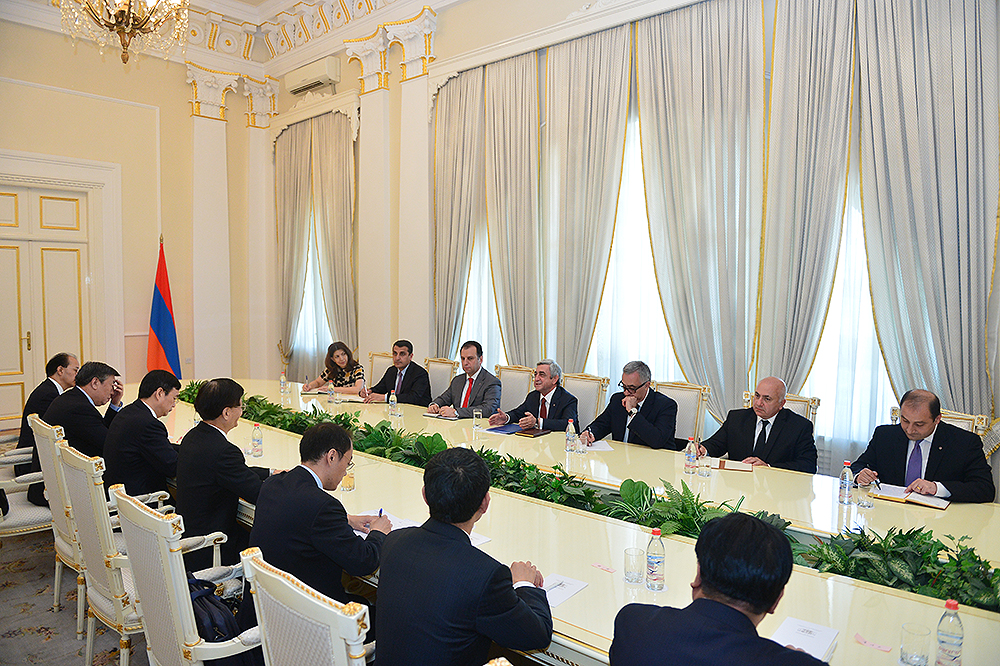 Հանրապետության Նախագահը ողջունել է հյուրերին, նշելով, որ նման ներկայացուցչական կազմով այցը Հայաստան վկայում է երկկողմ հարաբերությունների ամրապնդման մասին: Նախագահն անդրադարձել է երկու ժողովուրդների միջև բարեկամական կապեր և պատմականորեն ձևավորված հարաբերությունների ակունքներին, որոնք գալիս են դարերի խորքից՝ դեռևս Մեծ մետաքսի ճանապարհի գոյության ժամանակաշրջանից: