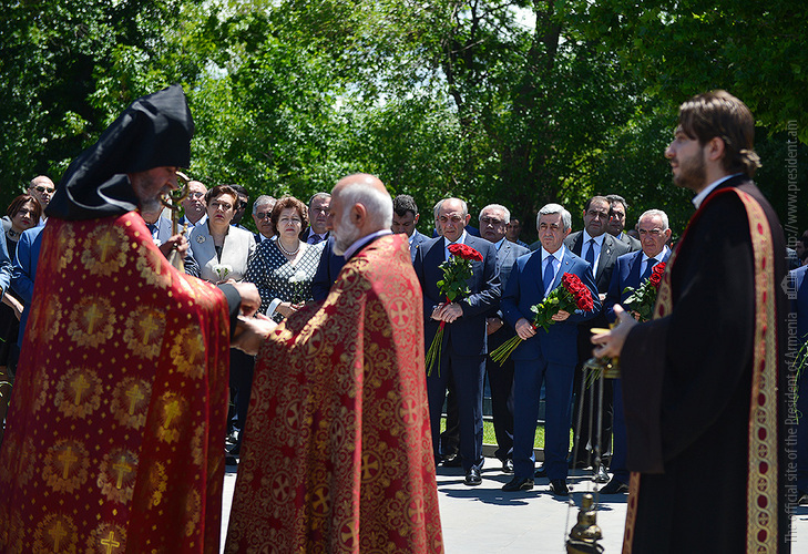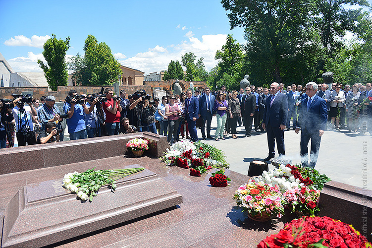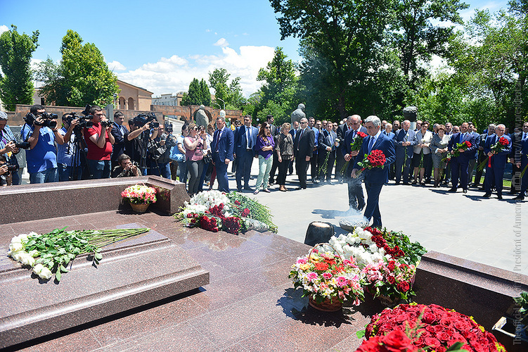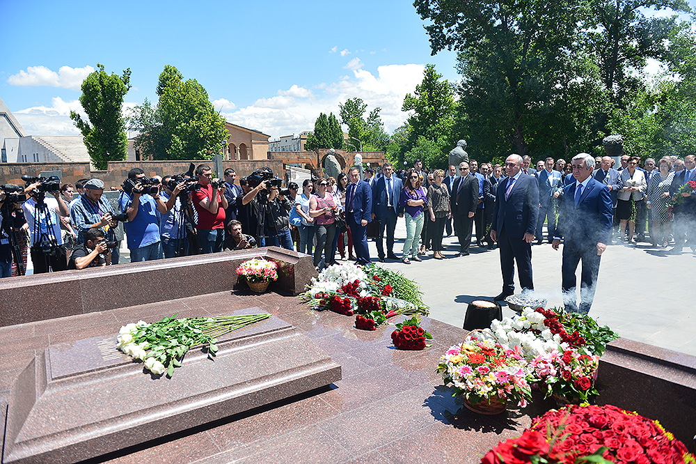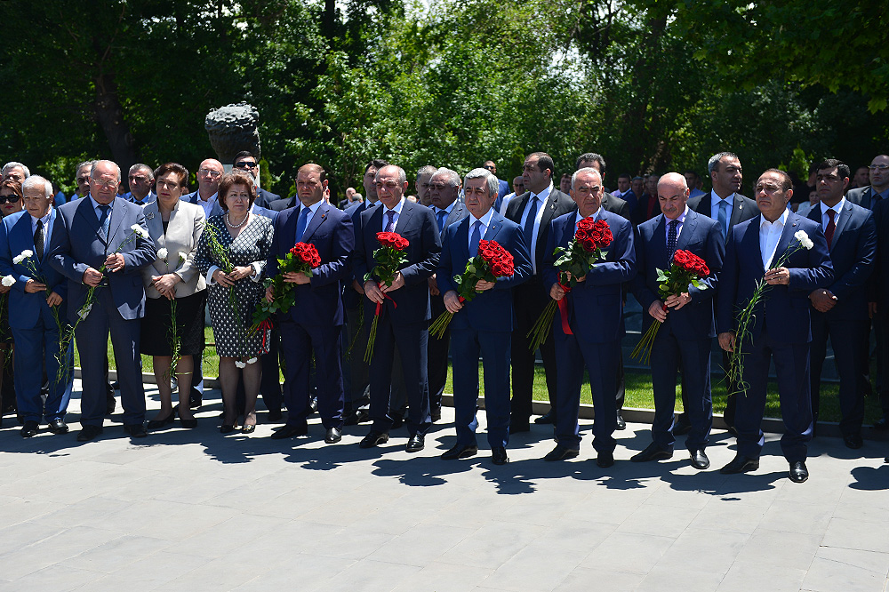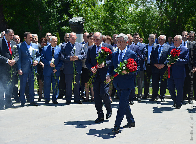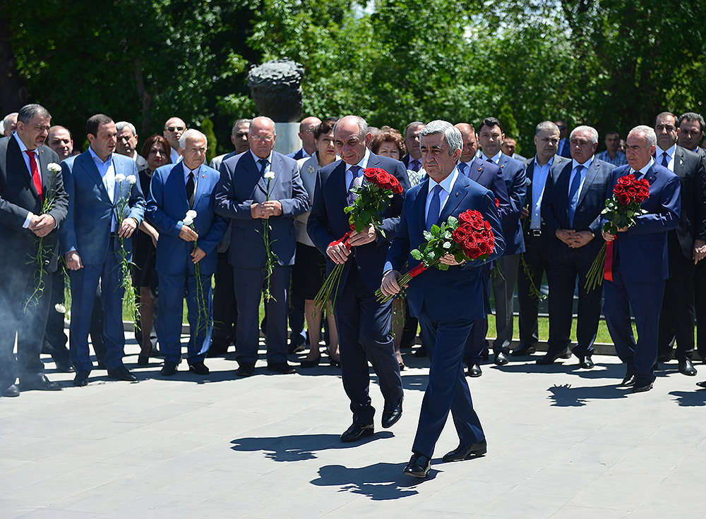 Անդրանիկ Մարգարյանի ծննդյան օրվա կապակցությամբ Նախագահ Սերժ Սարգսյանն այսօր ԼՂՀ Նախագահ Բակո Սահակյանի հետ և ՀՀ բարձրագույն ղեկավարության ուղեկցությամբ այցելել է Կոմիտասի անվան այգու պանթեոն` հարգանքի տուրք մատուցել պետական, քաղաքական գործչի հիշատակին: