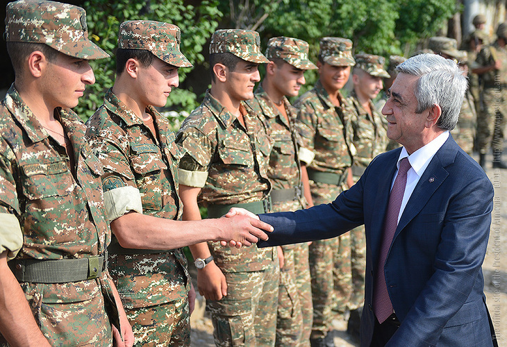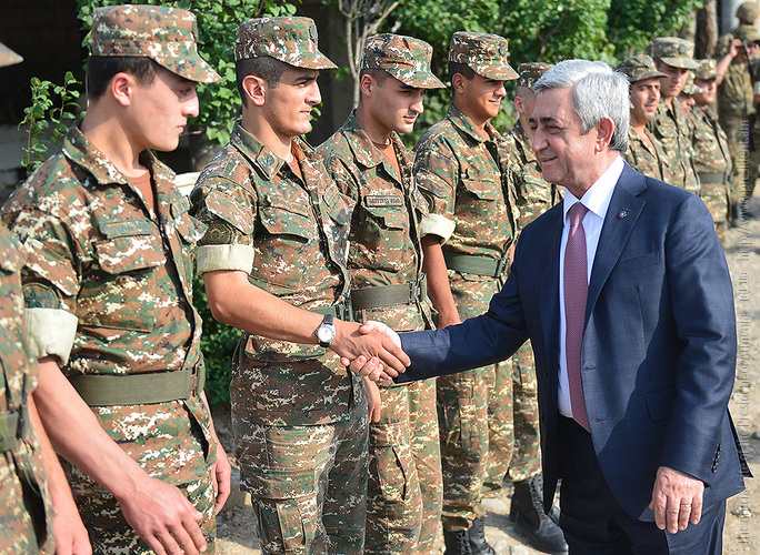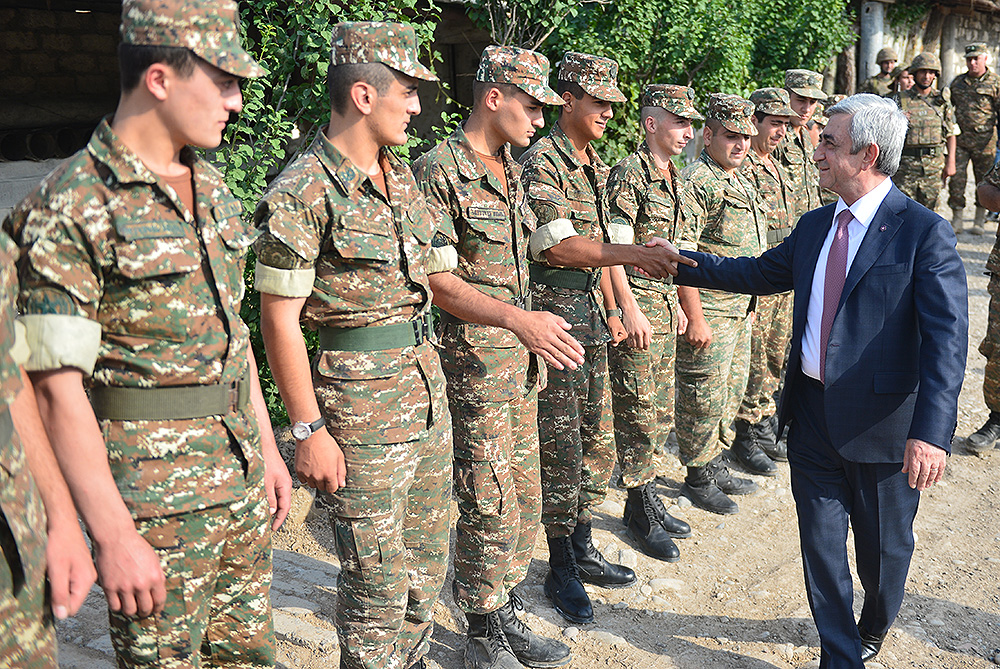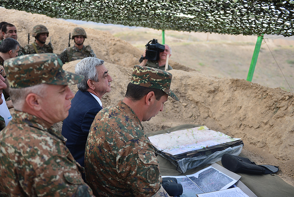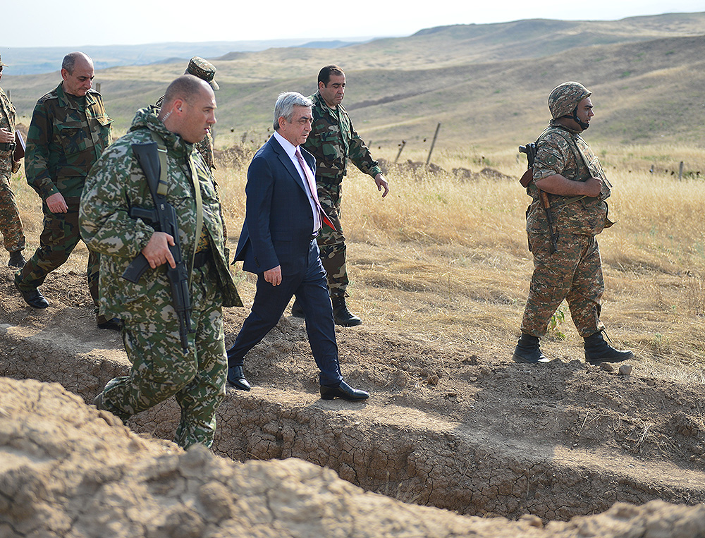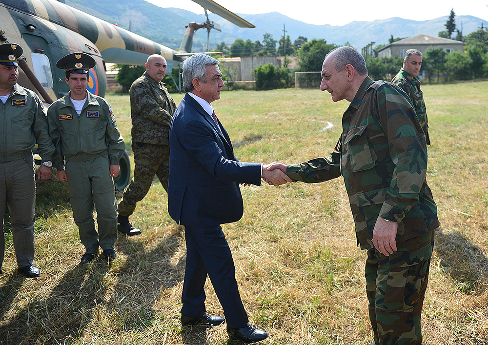 Հանրապետության հարավային թևում Հայաստանի Հանրապետության Նախագահ Սերժ Սարգսյանը, Արցախի Հանրապետության Նախագահ Բակո Սահակյանը և ԼՂՀ երկրորդ Նախագահ Արկադի Ղուկասյանն այցելել են սահմանագծի մի շարք հատվածներ, տեղում ծանոթացել զինվորների ծառայության ընթացքին և տիրող իրավիճակին: