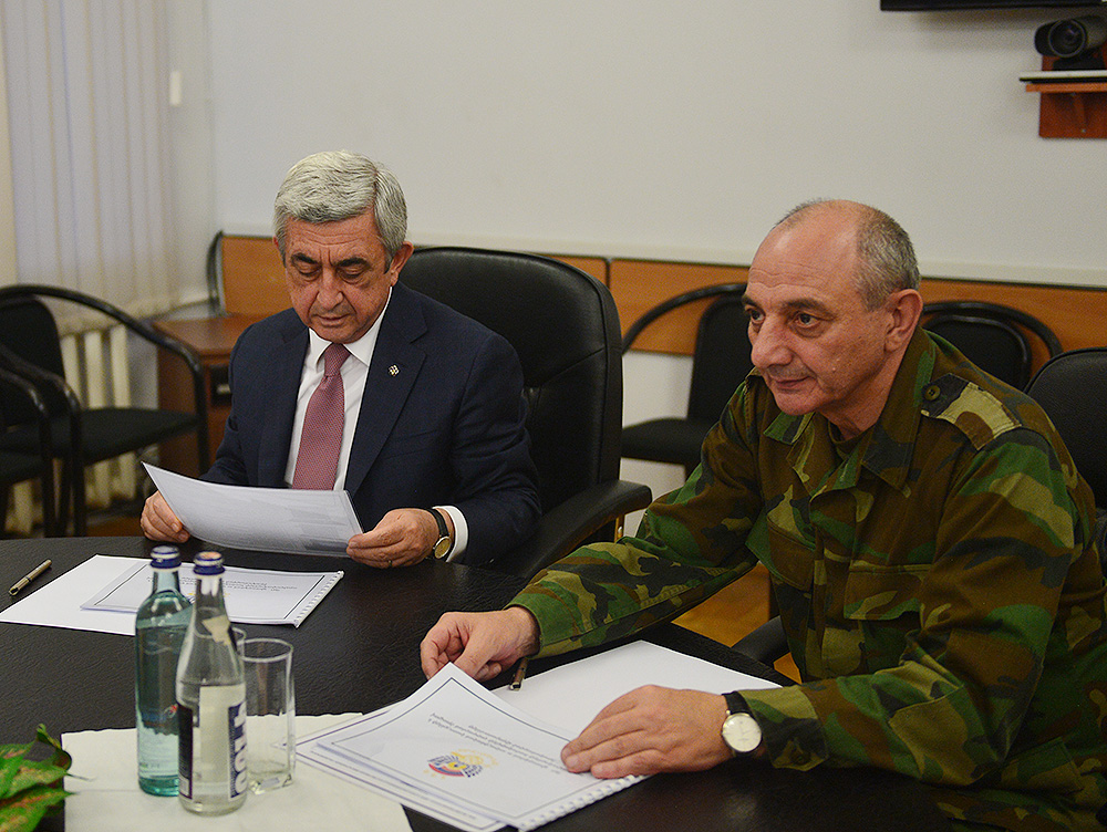 Նույն օրը հայկական երկու պետությունների ղեկավարները մայրաքաղաք Ստեփանակերտում խորհրդակցություն են անցկացրել պաշտպանության բանակի բարձրագույն սպայական կազմի հետ և քննարկել բանակաշինությանն առնչվող հարցերի լայն շրջանակ: