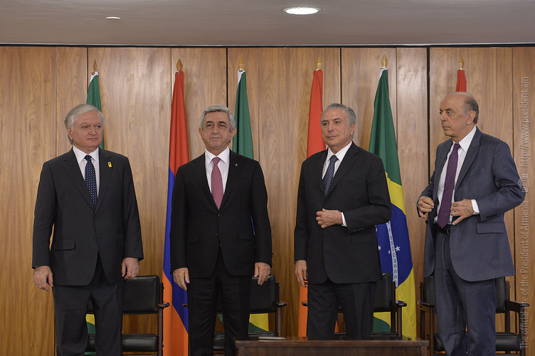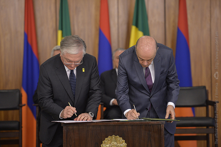 Հայ-բրազիլական բարձր մակարդակի բանակցությունների արդյունքներով ստորագրվել են երկրների միջև մի շարք ոլորտներում երկկողմ համագործակցության զարգացմանն ու ամրապնդմանն ուղղված փաստաթղթեր: Մասնավորապես ստորագրվել են` «Հայաստանի Հանրապետության կառավարության և Բրազիլիայի Դաշնային Հանրապետության կառավարության միջև կրթության բնագավառում համագործակցության մասին» համաձայնագիր, «Հայաստանի Հանրապետության գյուղատնտեսության նախարարության և Բրազիլիայի Դաշնային Հանրապետության գյուղատնտեսության, անասնաբուծության և մատակարարման նախարարության միջև գյուղատնտեսության բնագավառում համագործակցության մասին» համաձայնագիր, «Հայաստանի Հանրապետության արտաքին գործերի նախարարության և Բրազիլիայի Դաշնային Հանրապետության միջև քաղաքական խորհրդակցությունների վերաբերյալ» փոխըմբռնման հուշագիր, «Հայաստանի Հանրապետության արտաքին գործերի նախարարության դիվանագիտական դպրոցի և Բրազիլիայի Դաշնային Հանրապետության արտաքին գործերի նախարարության Ռիո Բրանկո ինստիտուտի միջև համագործակցության մասին» փոխըմբռնման հուշագիր, «Հայաստանի Հանրապետության կառավարության և Բրազիլիայի Դաշնային Հանրապետության կառավարության միջև տեխնիկական համագործակցության մասին» համաձայնագիր: