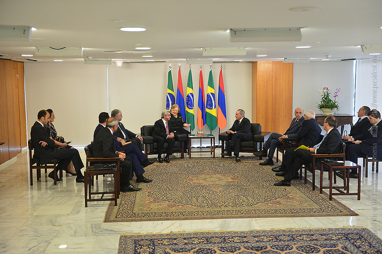 Հանդիպմանը երկու երկրների ղեկավարները մտքեր են փոխանակել Հայաստանի և Բրազիլիայի միջև տարբեր ոլորտներում փոխգործակցության և հարաբերությունների հետագա ամրապնդման ու խորացման հնարավորությունների շուրջ: ՀՀ Նախագահը գոհունակությամբ է նշել, որ Հայաստանի և Բրազիլիայի միջև ձևավորվել են հարգանքի և փոխադարձ վստահության վրա հիմնված ամուր բարեկամական կապեր: Սերժ Սարգսյանը կարևորել է աշխարհում թե՛ քաղաքական, թե՛ տնտեսական առումով առաջատար և ծանրակշիռ երկրներից մեկի` Բրազիլիայի հետ բազմաբնույթ կապերի զարգացումը և հույս հայտնել, որ իր այցը խթան կհանդիսանա երկկողմ հարաբերությունների առավել ամրապնդման համար՝ ուրվագծելով ապագա համագործակցության նոր ուղղություններ: