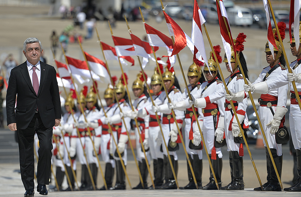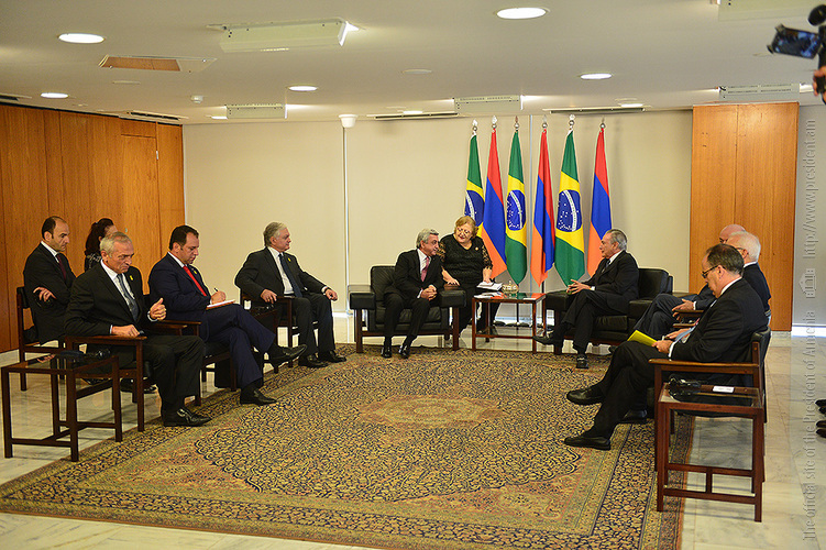 Աշխատանքային այցով Բրազիլիայի Դաշնային Հանրապետությունում գտնվող Հայաստանի Հանրապետության Նախագահ Սերժ Սարգսյանն այսօր՝ օգոստոսի 12-ին, ժամանել է երկրի մայրաքաղաք Բրազիլիա: Դիմավորման պաշտոնական արարողությունից հետո կայացել է Հայաստանի Հանրապետության Նախագահի հանդիպումը Բրազիլիայի Դաշնային Հանրապետության Նախագահի պաշտոնակատար Միշել Տեմերի հետ: