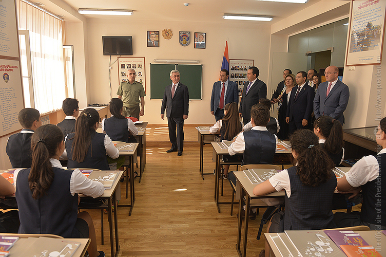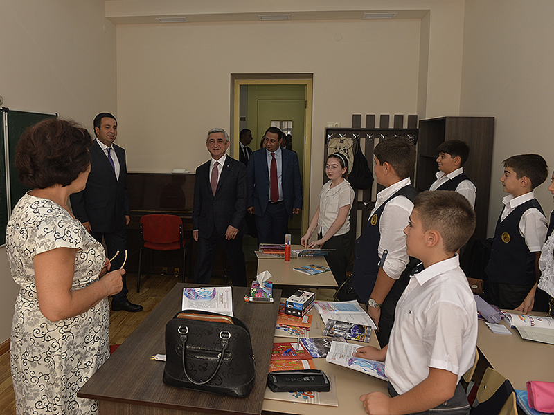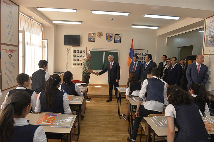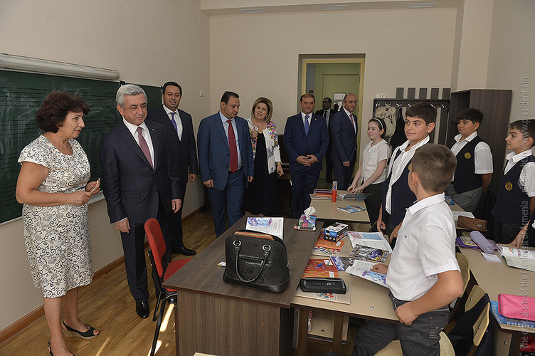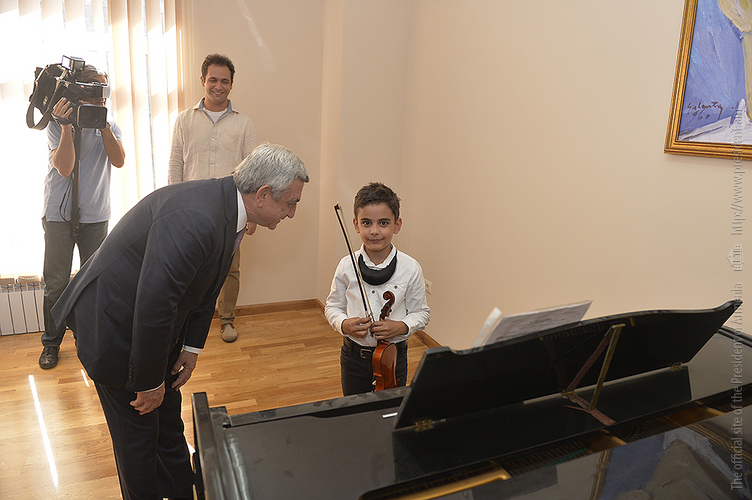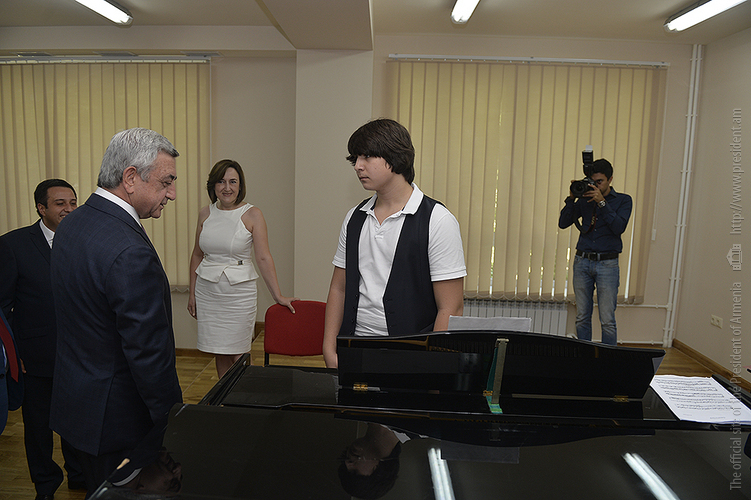 Նախագահ Սերժ Սարգսյանն այսօր ներկա է գտնվել հիմնանորոգված Երևանի Պ.Ի. Չայկովսկու անվան միջնակարգ երաժշտական մասնագիտական դպրոցի բացման արարողությանը: Հանրապետության Նախագահը ՀՀ մշակույթի նախարար Հասմիկ Պողոսյանի, Երևանի քաղաքապետ Տարոն Մարգարյանի, «Հայաստան» համահայկական հիմնադրամի և երաժշտական դպրոցի ներկայացուցիչների ուղեկցությամբ շրջայց է կատարել նորաբաց դպրոցում, ծանոթացել ուսումնառության պայմաններին, զրուցել դպրոցի ուսուցիչների ու սաների հետ, որից հետո հիմնանորոգված դահլիճում ունկնդրել է տարբեր միջազգային և հանրապետական մրցույթների դափնեկիր՝ դպրոցի տաղանդավոր աշակերտների կատարումները: