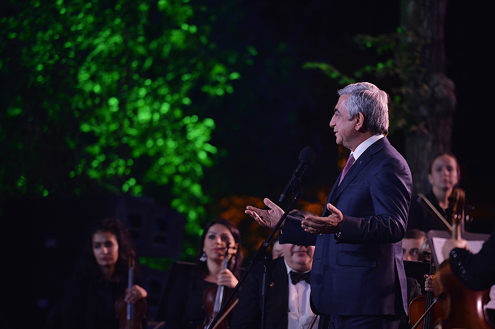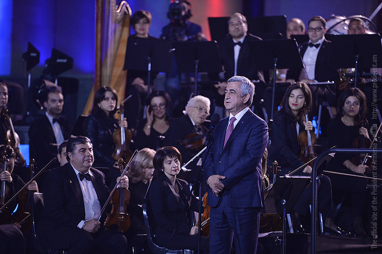Իրոք, դուք թանկագին բարեկամներ եք, որովհետև արդեն 60 տարի դուք գալիս եք մեր տները, մտնում եք մեր բնակարանները, լցնում մեր երեկոները հետաքրքիր փաստերով, տեղեկացնում մեզ ու սովորեցնում գնահատել իրականությունը: Երկար տարիներ դուք մեզ հետ միասին կիսել եք մեր ուրախությունը ու, իհարկե, նաև ցավը: Ուզում եմ հատուկ շնորհակալություն հայտնել այն աշխատակիցներին, ովքեր գիտեն բնակարան մտնելու և խոսք ասելու արժեքը և դա անում են մեծ պատասխանատվությամբ: Ուզում եմ հատուկ շնորհակալություն հայտնել նրանց, ովքեր օգնում են եթերում երևացող մարդկանց ստեղծել լավ գործեր: Նոր եթերաշրջանը, առավել ևս հոբելյանական եթերաշրջանը, ծննդյան օրվա պես մի բան է: Այսօր տոն է, բայց այս տոնի ժամանակ էլ, տեսեք, տեսախցիկի ետևում մարդիկ աշխատում են: Մենք նոր տեսանք, թե մարդիկ ռեժիսորական վահանակի առջև ինչպես են աշխատում և շատ հաճախ այդ մարդկանց դեմքով էլ չենք ճանաչում»,- ասել է Նախագահը և ընդգծել, որ հենց նրանց շնորհիվ է, որ 60 տարի առաջ Հայաստանում իր գործունեությունն սկսեց հեռուստատեսությունը և կարճ ժամանակաընթացքում կարողացավ Խորհրդային Միության երկրներից ամենաշատ եթերաժամն ունենալ, ինչը պայմանավորված էր լավ մասնագետների առկայությամբ: Մեր երկրի անկախացումից հետո էլ, դժվարին պայմաններում աշխատող հեռուստատեսության աշխատակիցների աշխատանքի արդյունքում, ՀՀ Նախագահի խոսքով, տաղավարներից ջերմություն էր մտնում մարդկանց բնակարաններ: Այսօր արդեն բոլորովին նոր և ժամանակակից տեխնիկայով հագեցած, բարձրորակ պատկեր հաղորդող հեռուստատեսությունը փորձառու մասնագետների աշխատանքի, ինչպես նաև բարեկամ Չինաստանի Ժողովրդական Հանրապետության կողմից հեռուստաընկերությանը ցուցաբերված օժանդակության արդյունքն է: Այդուհանդերձ, Նախագահի համոզմամբ, առաջինը լինելու կամ առաջինը դառնալու համար մշտապես պետք է կատարելագործվել. «Բոլորիդ մեկ անգամ ևս շնորհավորում եմ, այդ թվում նաև ինձ՝ բոլորիս, այս օրվա՝ Հայաստանի հանրային հեռուստաընկերության 60-րդ եթերաշրջանի կապակցությամբ: Շնորհակալ եմ ձեր աշխատանքի համար: Առա՛ջ»,- Հայաստանի հանրային հեռուստաընկերության հոբելյանի կապակցությամբ իր շնորհավորական խոսքում ասել է Նախագահ Սերժ Սարգսյանը:
