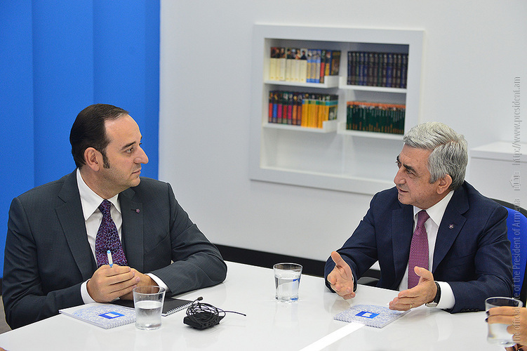 Հեռուստաընկերության ղեկավար կազմի ուղեկցությամբ Նախագահը շրջայց է կատարել ընկերությունում, ծանոթացել հեռուստաեթերի բովանդակային և տեխնիկական որակի բարձրացման, եթերային նոր քաղաքականության, ինչպես նաև հեռուստաընկերության շենքում վերանորոգման, աշխատակիցների գործունեության պայմանների բարելավման ուղղությամբ կատարված աշխատանքներին ու առաջիկա տարիների զարգացման հեռանկարին, լսել Հանրային հեռուստաընկերության գործադիր տնօրենի ամփոփ զեկույցն այդ ամենի վերաբերյալ: Այդ համատեքստում անդրադարձ է եղել նաև Հանրային հեռուստատեսությամբ հեռարձակվող «Ամենակարող երգիչ» նոր հաղորդմանը, որը հասարակության մեջ անցած մի քանի օրերին քննարկումների ու քննադատության թեմա է դարձել: