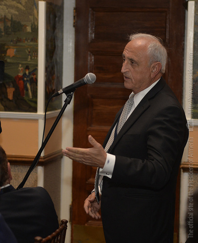 Մեծապես ուրախ եմ ողջունել բոլորիդ այս նշանակալի միջոցառման շրջանակներում, որն անցկացվում է Հայաստանի ու համայն հայության համար խորհրդանշական պահի: Ամփոփելով անկախության 25 տարիները՝ հայ ժողովուրդը այսօր շարունակում է հարթել իր ապագա զարգացման ճանապարհը։ Անցած երկուս ու կես տասնամյակը լի էր ինչպես մարտահրավերներով, այնպես էլ՝ ձեռքբերումներով։ Քառորդդարյա անկախությունից հետո մենք վստահորեն ընթանում ենք առաջ՝ մեր նոր տեսլականը խարսխելով այն ձեռքբերումների վրա, որ արձանագրել ենք մեր աշխատասեր ու շնորհալի ժողովրդի և մեր բարեկամների ու գործընկերների ջանքերի շնորհիվ։