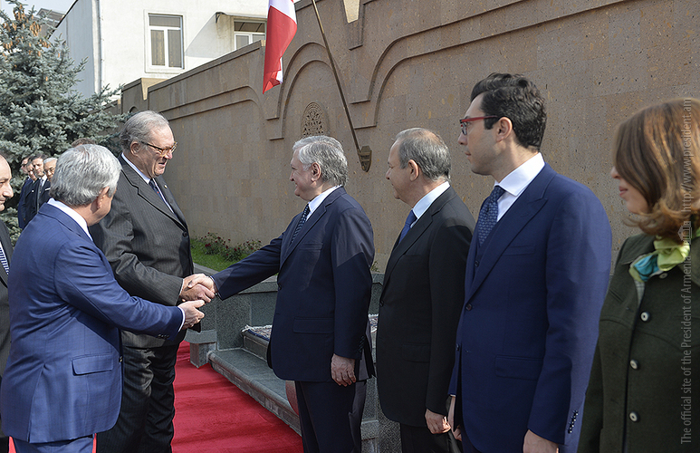 «Ձե՛րդ Վսեմություն, ես առանձնակի ջերմությամբ եմ ողջունում Ձեզ Հայաստանում: Ինձ համար մեծ պատիվ է հյուրընկալել Ձեզ և Ձեր գլխավորած հարգարժան պատվիրակությանը: Մալթայի Ինքնիշխան Մարտական Ուխտի մեծ վարպետի այցը Հայաստան շատ կարևոր իրադարձություն է մեր դիվանագիտական հարաբերությունների պատմության մեջ, և այն, վստահ եմ, մեզ հնարավորություն կտա մեր համագործակցությունն ակտիվացնելու: