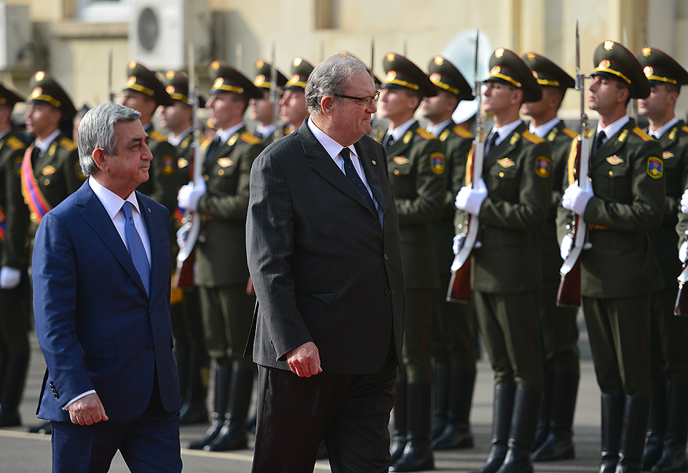 Աշխարհի առաջին քրիստոնյա ժողովրդի և քրիստոնյա հնագույն ուխտի առնչությունները դեռևս խաչակիրների արշավանքների ժամանակ ձևավորվել էին փոխադարձ հարգանքի և փոխշահավետության հիման վրա: Մենք ունենք նույնակունք քրիստոնեական արժեհամակարգ, և սրանք այն հիմքերն են, որ մեզ այսօր հնարավորություն են տալիս ձևավորելու ակտիվ միջպետական հարաբերություններ: Տեղյակ եմ, որ Դուք հագեցած օրակարգով ակտիվ այց եք անցկացնում մեր երկրում: Հուսով եմ, որ հնարավորություն կունենաք այդ ընթացքում ծանոթանալու մեր ժողովրդին, քրիստոնեական մեր մշակույթին, որն ինչ-որ տեղ նման է ընդհանուր քրիստոնեական մշակույթին, բայց նաև յուրատիպ է, առանձնահատուկ: Բարով եք եկել Հայաստան»,-ողջույնի խոսքում ասել է Հանրապետության Նախագահը: