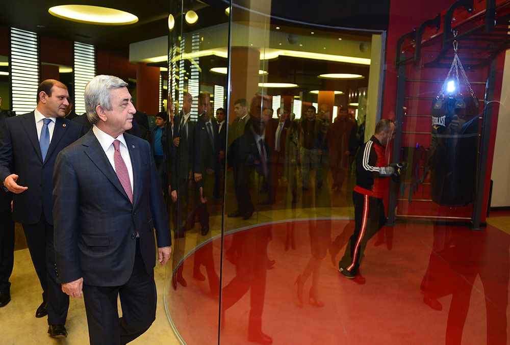 Երևանի քաղաքապետ Տարոն Մարգարյանի, համալիրի սեփականատեր, ԱԺ պատգամավոր Գագիկ Ծառուկյանի, համալիրի ղեկավարության և բացման կապակցությամբ համալիրում գտնվող բազմաթիվ հյուրերի հետ միասին Հանրապետության Նախագահը շրջայց է կատարել առողջ ապրելակերպին միտված սպորտային ժամանակակից սարքավորումներով հագեցած նորակառույց համալիրում, ծանոթացել կատարված աշխատանքներին, իրականացված ներդրումներին, ստեղծված շուրջ 200 աշխատատեղերին և առաջարկվող ծառայությունների որակին: