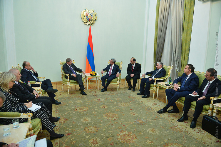 ՀՀ Նախագահը և ԵՄ հանձնակատարը ջերմությամբ են հիշել նախորդ հանդիպումը, որից հետո, ըստ Նախագահ Սարգսյանի, նաև այդ հանդիպման արդյունքներով պայմանավորված՝ որակական առաջընթաց է արձանագրվել Հայաստան-ԵՄ համագործակցության մեջ՝ ավելի է ակտիվացել բարձրաստիճան քաղաքական երկխոսությունը, արձանագրվել են որոշակի ձեռքբերումներ: Հանրապետության Նախագահը հատկանշական է համարել, որ դեռևս մեկ տարի առաջ պարոն Հանի հետ քննարկած որոշ հարցեր արդեն երկկողմ օրակարգի մաս են դարձել, այդ թվում՝ իրավական փաստաթղթի շուրջ բանակցությունները: