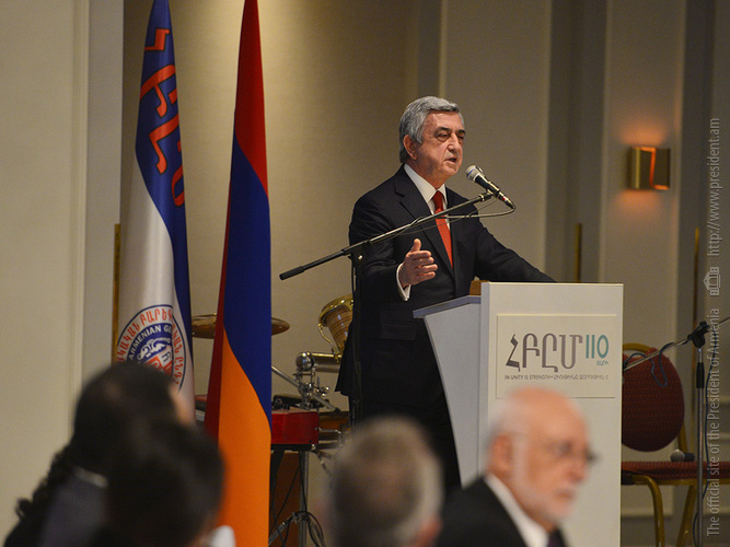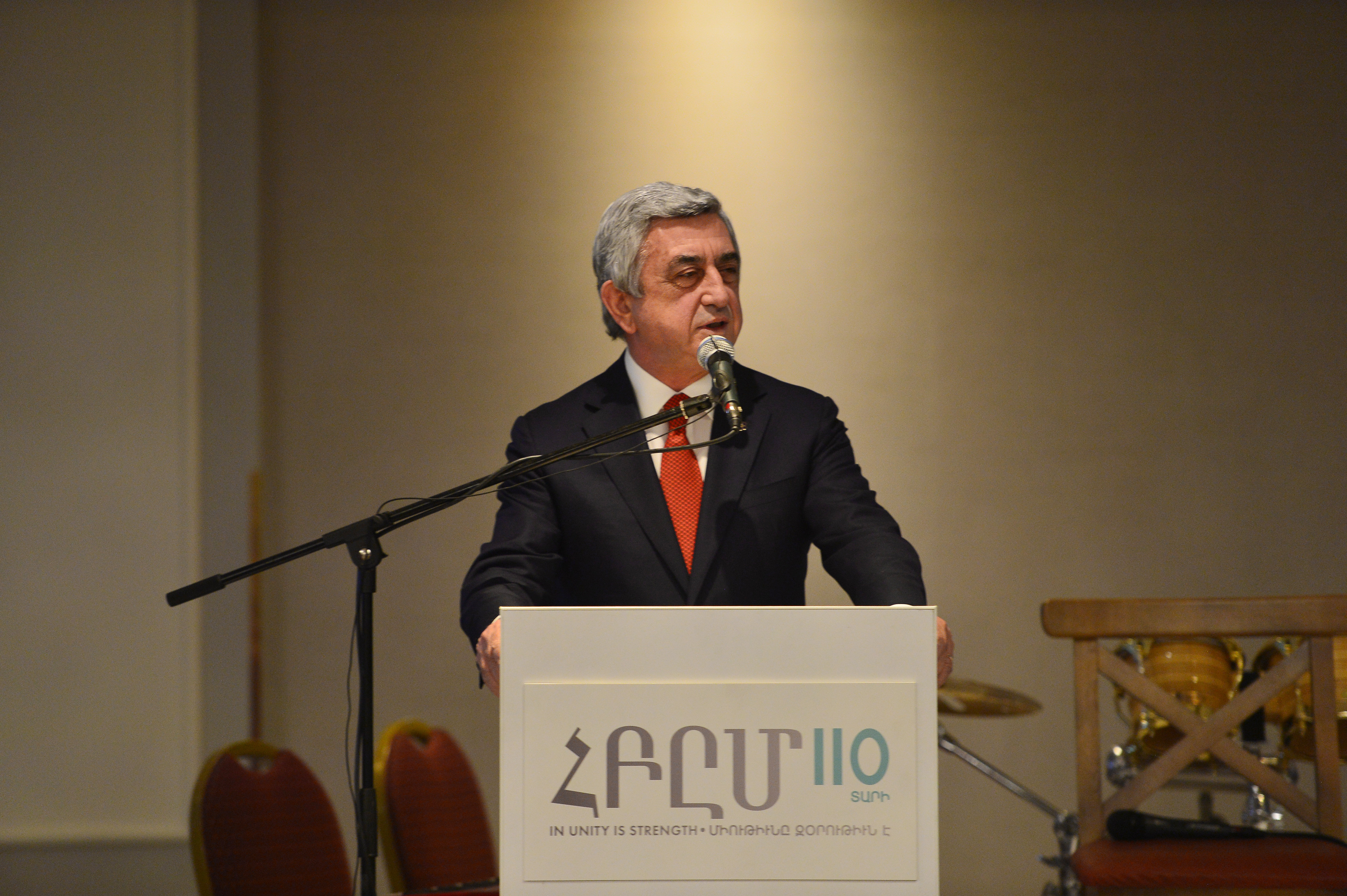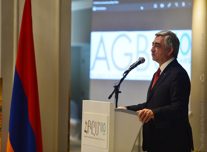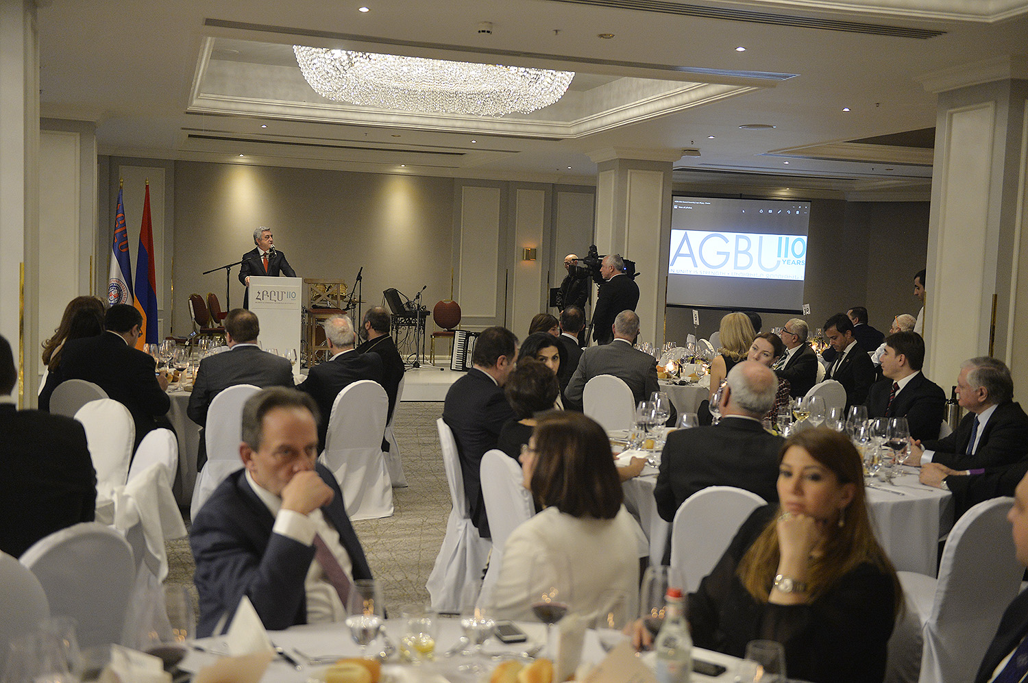 Նախագահ Սերժ Սարգսյանը դեկտեմբերի 4-ի երեկոյան «Արմենիա Մարիոթ» հյուրանոցի «Տիգրան Մեծ» սրահում մասնակցել է Հայկական բարեգործական ընդհանուր միության 110-ամյակի առիթով կազմակերպված գալա ընթրիքին: Հանրապետության Նախագահը հանդես է եկել ելույթով և շնորհավորական խոսք հղել ՀԲԸՄ անդամներին և միջոցառման բոլոր մասնակիցներին: