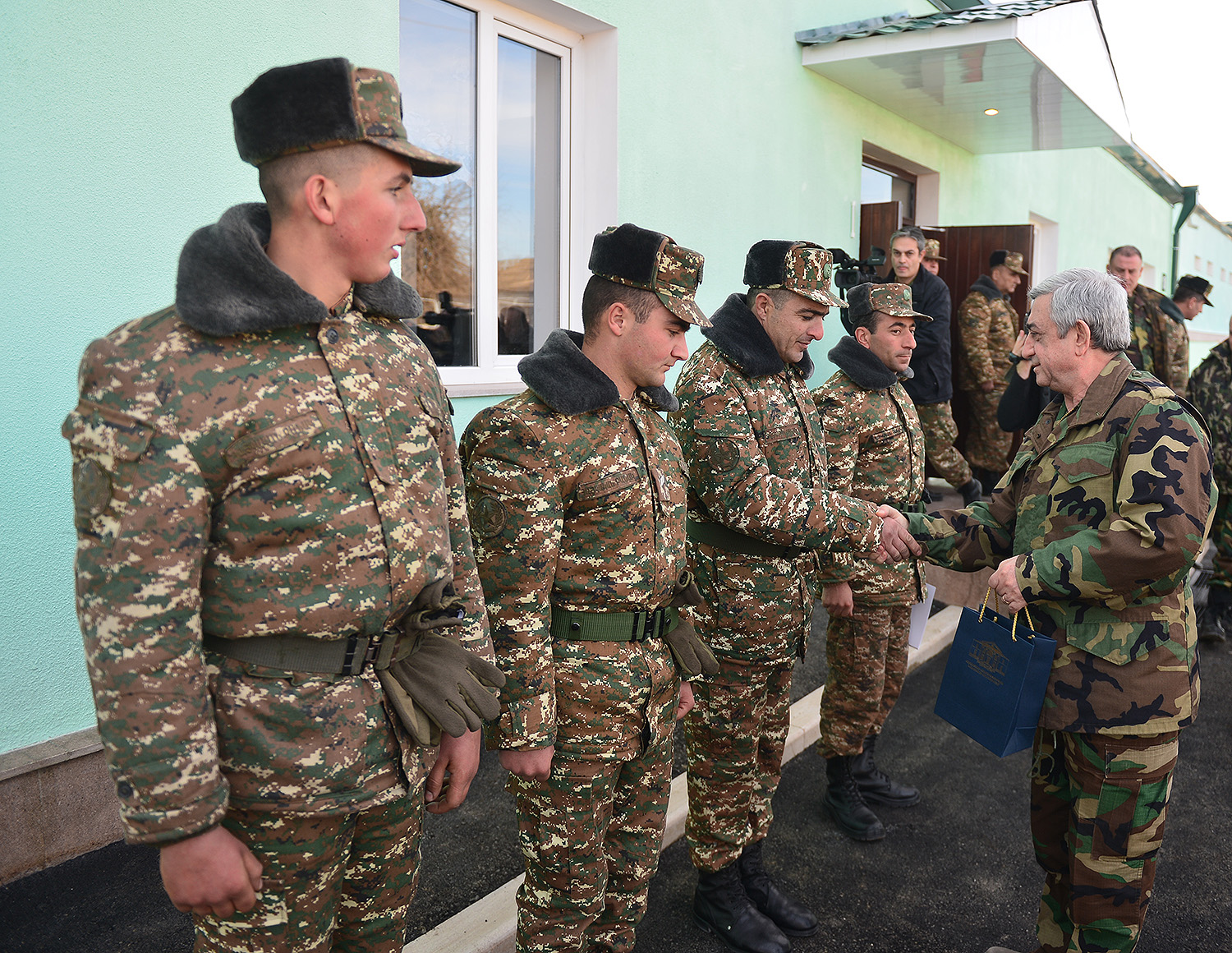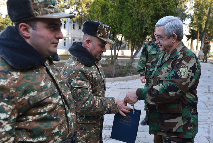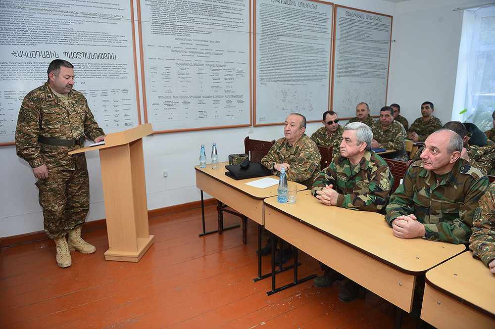 Նախագահներն ունկնդրել են զորամասի հրամանատարի զեկույցը, որից հետո հայկական երկու հանրապետությունների ղեկավարներին ներկայացվել են ինժեներական և ամրաշինական ենթակառուցվածքներն ու հուսալի պաշտպանություն իրականացնելու նոր տեխնոլոգիաները: Հայաստանի Հանրապետության Նախագահը խրախուսել է ծառայության մեջ աչքի ընկած զինծառայողներին: