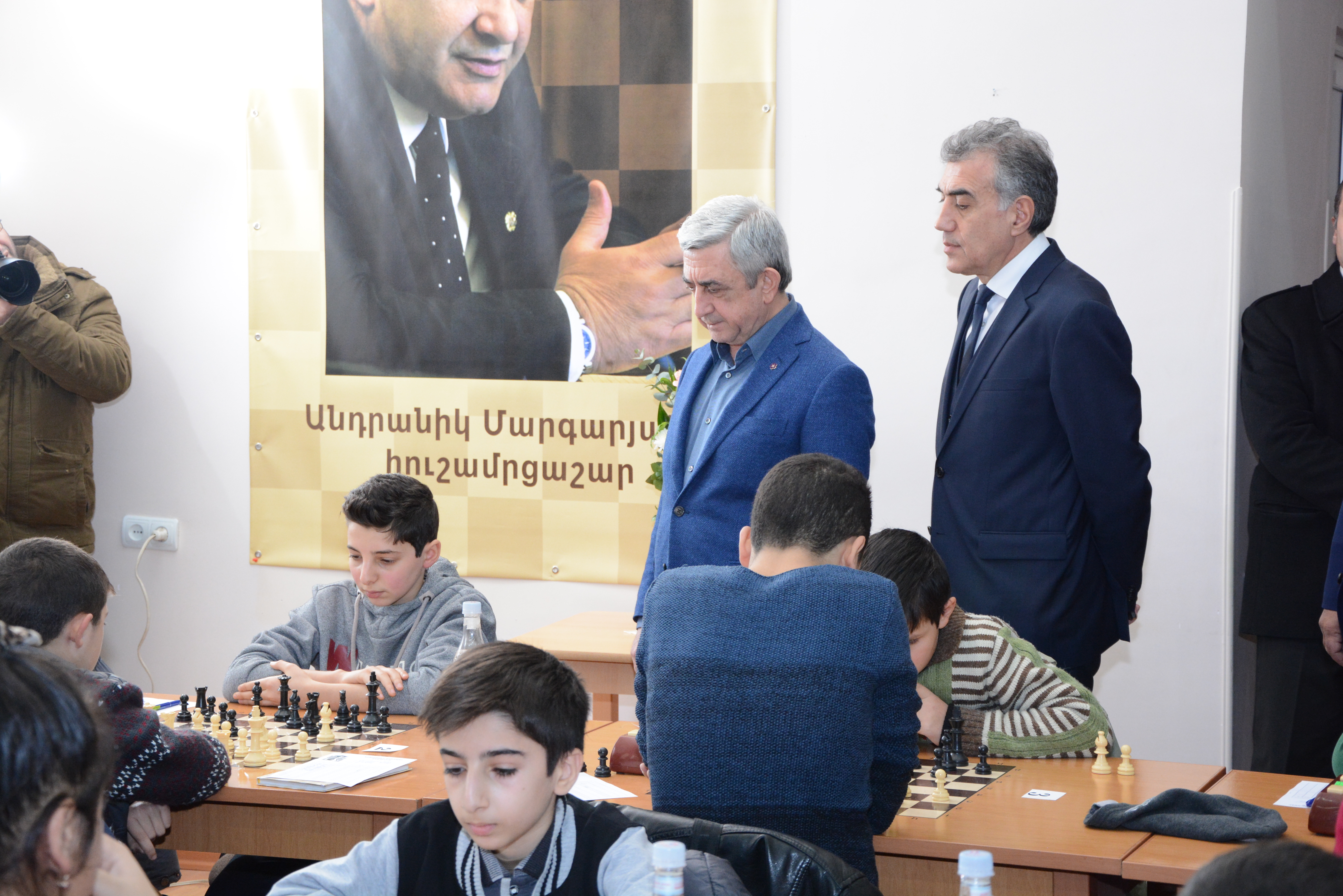Հանրապետության Նախագահ, Հայաստանի շախմատի ֆեդերացիայի նախագահ Սերժ Սարգսյանն այսօր այցելել է Հայաստանի շախմատի ակադեմիա, հետևել հունվարի 8-ից մեկնարկած` Անդրանիկ Մարգարյանի հիշատակին նվիրված 7-րդ հուշամրցաշարի ընթացքին, որը կեզրափակվի հունվարի 16-ին:
