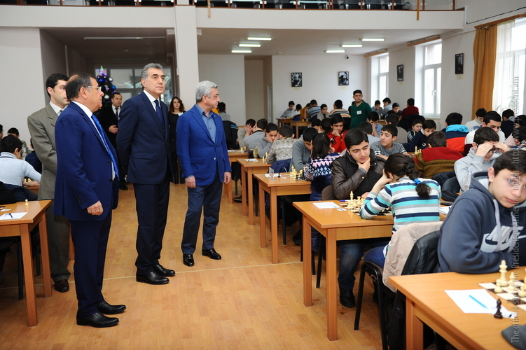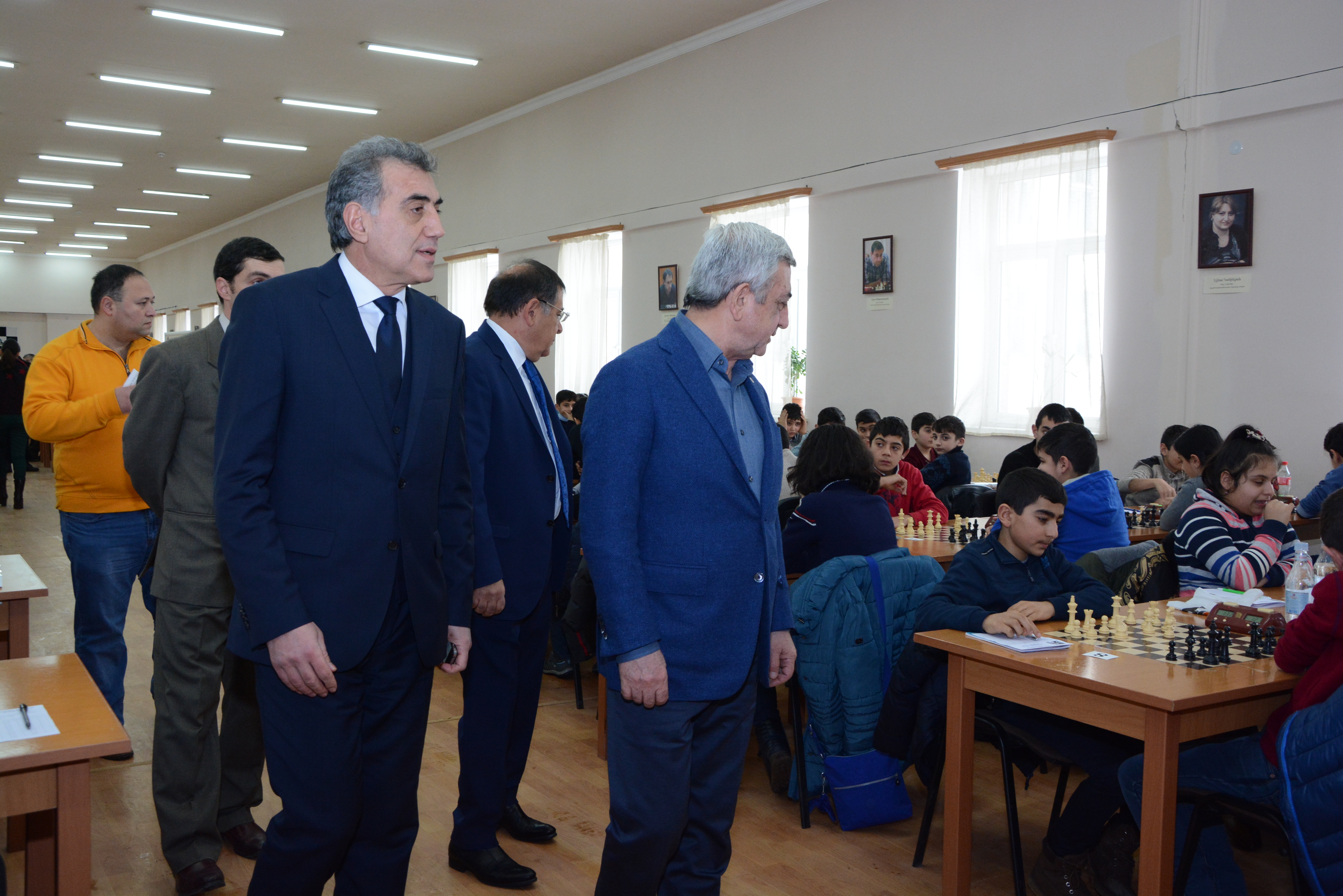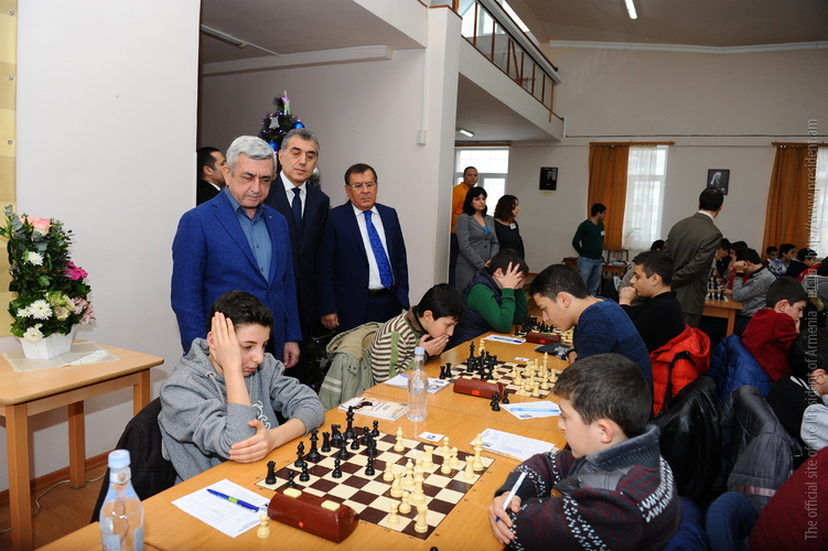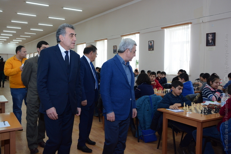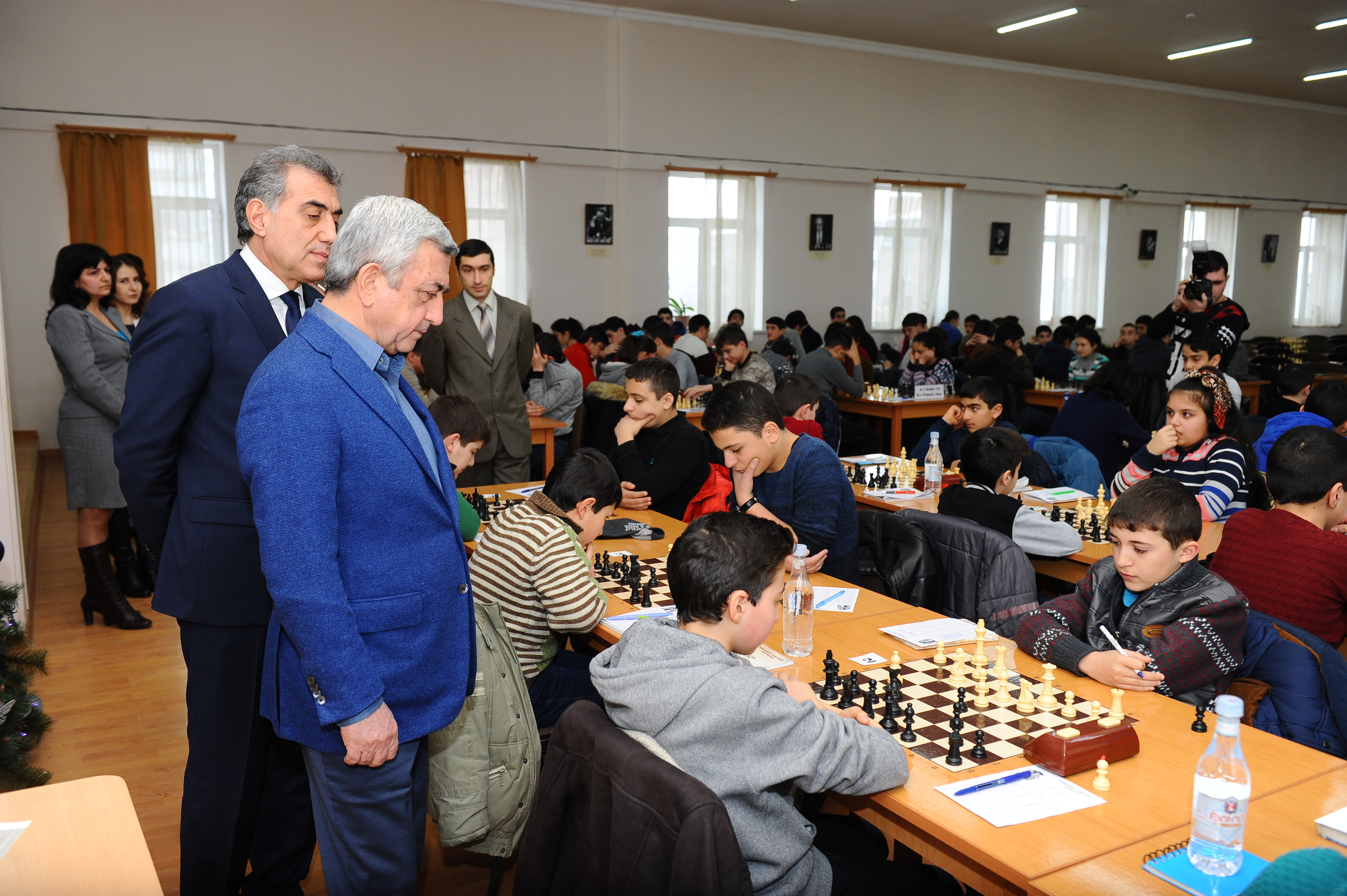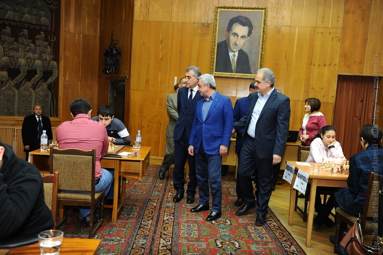 Սերժ Սարգսյանն այնուհետև այցելել է Տիգրան Պետրոսյանի անվան շախմատի տուն, որտեղ հունվարի 11-ից անցկացվում են Հայաստանի տղամարդկանց 77-րդ և կանանց 72-րդ առաջնությունները: Մրցաշարերն անցկացվում են շրջանային մրցակարգով: Տղամարդկանց մրցաշարին մասնակցում է 10 շախմատիստ, այդ թվում` 7 գրոսմայստեր և 3 միջազգային վարպետ: Մասնակիցների թվում են շախմատի կրկնակի Օլիմպիական չեմպիոն Տիգրան Լ. Պետրոսյանը, աշխարհի թիմային չեմպիոն Ռոբերտ Հովհաննիսյանը, Հայաստանի գործող չեմպիոն Զավեն Անդրիասյանը, մինչև 18 տարեկանների աշխարհի չեմպիոն Մանուէլ Պետրոսյանն ու մինչև 16 տարեկանների աշխարհի չեմպիոն Հայկ Մարտիրոսյանը: Կանանց մրցաշարին մասնակցում է 10 շախմատիստուհի, այդ թվում` 3 միջազգային վարպետ: Մրցաշարերի հաղթողները կընդգրկվեն ազգային հավաքականների կազմերում:
