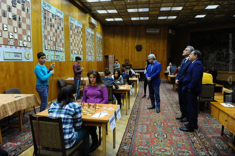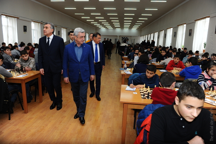 Նախագահ Սերժ Սարգսյանը Հայաստանի շախմատի ակադեմիայում և շախմատի տանը հետևել է խաղերի ընթացքին
