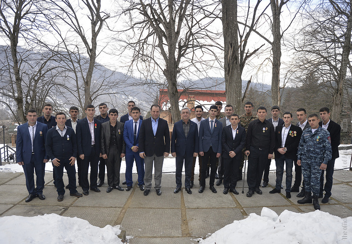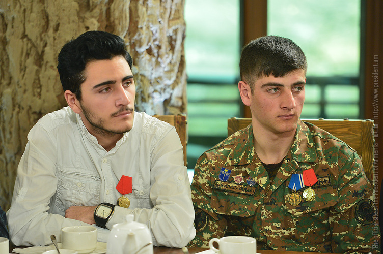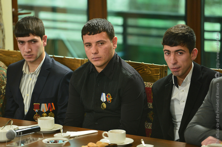 Հանրապետության Նախագահն այսօր պաշտպանության նախարարության Դիլիջանի «Լեռնային Հայաստան» առողջարանում հանդիպում է ունեցել վերջին ամիսներին զորացրված՝ ծառայության ընթացքում անձնվիրությամբ ու խիզախությամբ աչքի ընկած զինծառայողների հետ, որոնց մեծ մասը մասնակցել է մարտական գործողություններին՝ հակառակորդի ոտնձգություններից պաշտպանելով հայրենիքը: Հանդիպմանը Հանրապետության Նախագահ, զինված ուժերի գերագույն գլխավոր հրամանատարի հետ մասնակցել է նաև պաշտպանության նախարար Վիգեն Սարգսյանը: