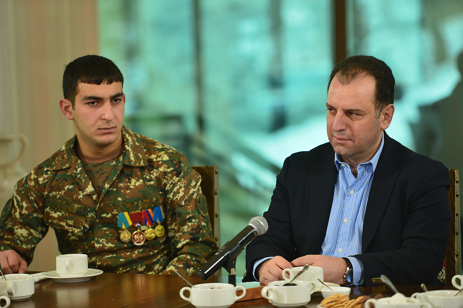 Զորացրված զինծառայողները Նախագահից հետաքրքրվել են Լեռնային Ղարաբաղի հակամարտության կարգավորման գործընթացի հեռանկարով, 25-ամյա հայոց բանակի ամենամեծ ձեռքբերմամբ, պաշտպանության նորանշանակ նախարարի կողմից հռչակված «Ազգ-բանակ» հայեցակարգի իրականացման գործում զորացրված զինվորի դերակատարմամբ, հասարակության մեջ սպայի կերպարի ճիշտ ներկայացման, նրա հեղինակության բարձրացման հնարավորություններով, հակառակորդի կողմից ծավալվող սպառազինությունների մրցավազքի պարագայում հայկական կողմի հնարավոր պատասխանով, մարտական հերթապահության մեջ ներգրավված զինծառայողների ուսման վարձերի փոխհատուցման ծրագրով և բանակաշինությանն ու պաշտպանության ոլորտին վերաբերող մի շարք այլ թեմաներով: