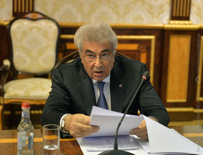 Հանրապետության Նախագահ, Ազգային անվտանգության խորհրդի նախագահ Սերժ Սարգսյանն այսօր հրավիրել է Ազգային անվտանգության խորհրդի նիստ: Օրակարգի շրջանակներում ՀՀ ՍԴ նախագահ, ՀՀ Նախագահին առընթեր սահմանադրական բարեփոխումների իրավական ապահովմանն աջակցող մասնագիտական խորհրդակցական խորհրդի նախագահ Գագիկ Հարությունյանը Անվտանգության խորհրդին հաղորդում է ներկայացրել երկրում իրավական անվտանգության երաշխավորման, սահմանադրական բարեփոխումների օրենսդրական ապահովման հիմնախնդիրների և վերոնշյալ մասնագիտական խորհրդակցական խորհրդի գործունեության մասին: