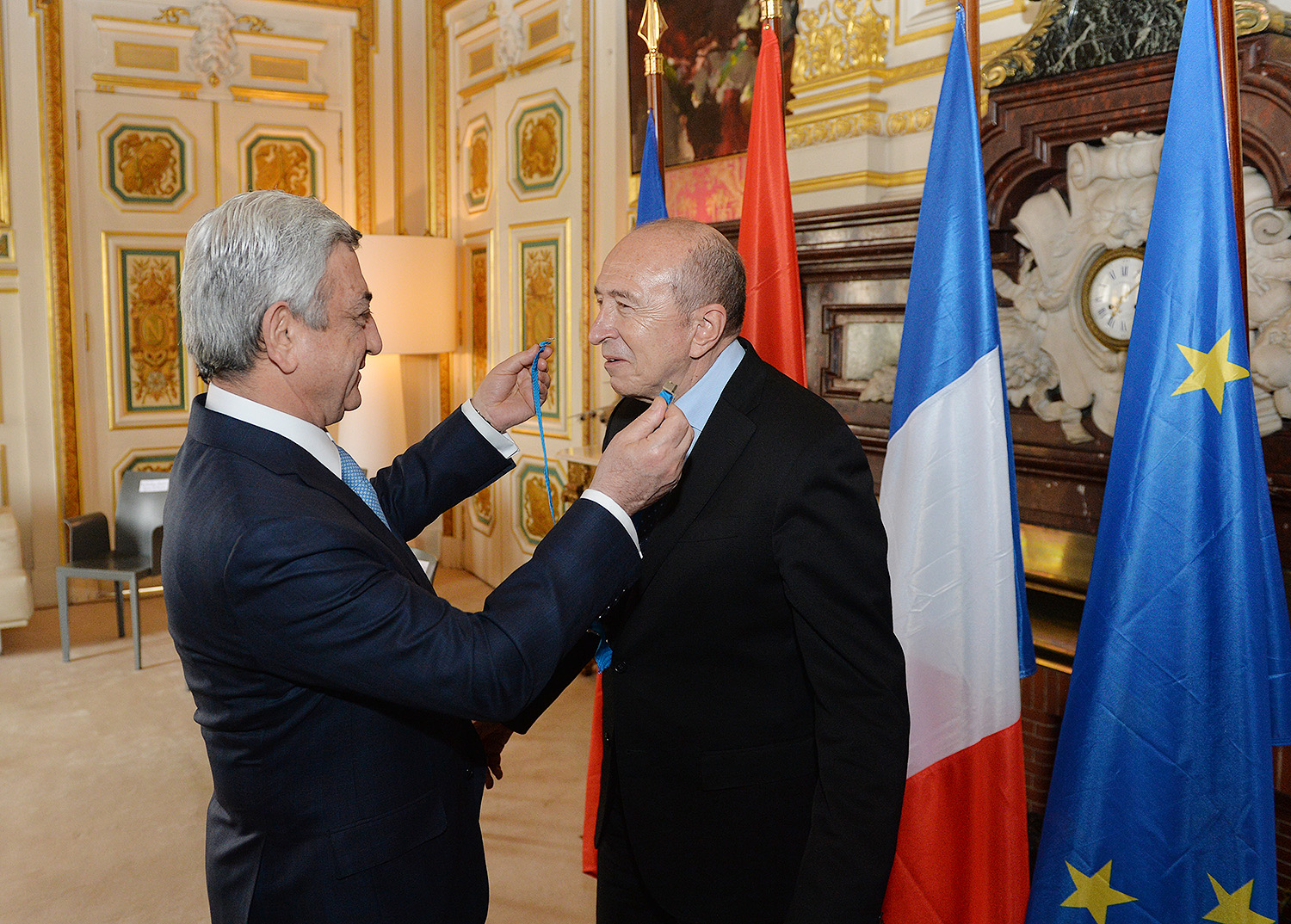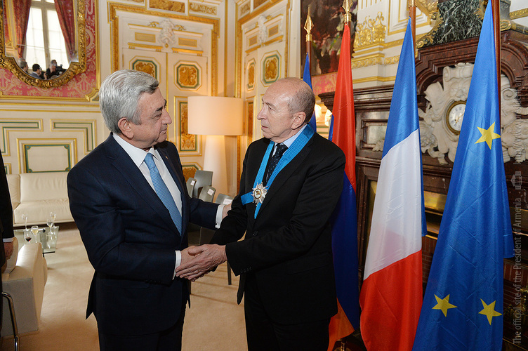 Հանդիպման ավարտին Նախագահ Սերժ Սարգսյանը Լիոնի քաղաքապետ Ժերար Կոլոնին պարգևատրել է Պատվո շքանշանով՝ հայ-ֆրանսիական բարեկամական հարաբերությունների ամրապնդման և զարգացման գործում ներդրած նշանակալի ավանդի համար: