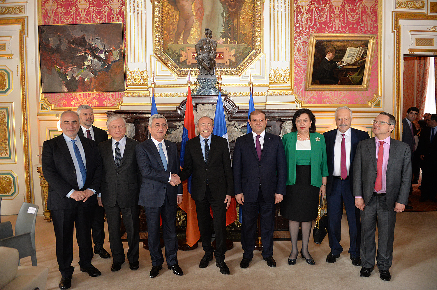 Լիոնի քաղաքապետարանում կայացած հանդիպմանը Նախագահ Սարգսյանը շնորհակալություն է հայտնել քաղաքապետ Ժերար Կոլոնին ջերմ ընդունելության համար և նշել, որ իրենց հանդիպումները բարի ավանդույթ են դառնում, ինչը անհրաժեշտ է լավագույնս ծառայեցնել երկկողմ կապերի ընդլայնման ու ամրապնդման գործին։ Նախագահը համոզվածություն է հայտնել, որ դասվելով Ֆրանսիայի լավագույն քաղաքների շարքում, Լիոնը տարեցտարի զարգանում է, ինչը նաև քաղաքապետի անձնական ձեռքբերումն է, քանի որ նա իր կյանքի ու գործունեության պատկառելի մասը նվիրել է այս քաղաքին: