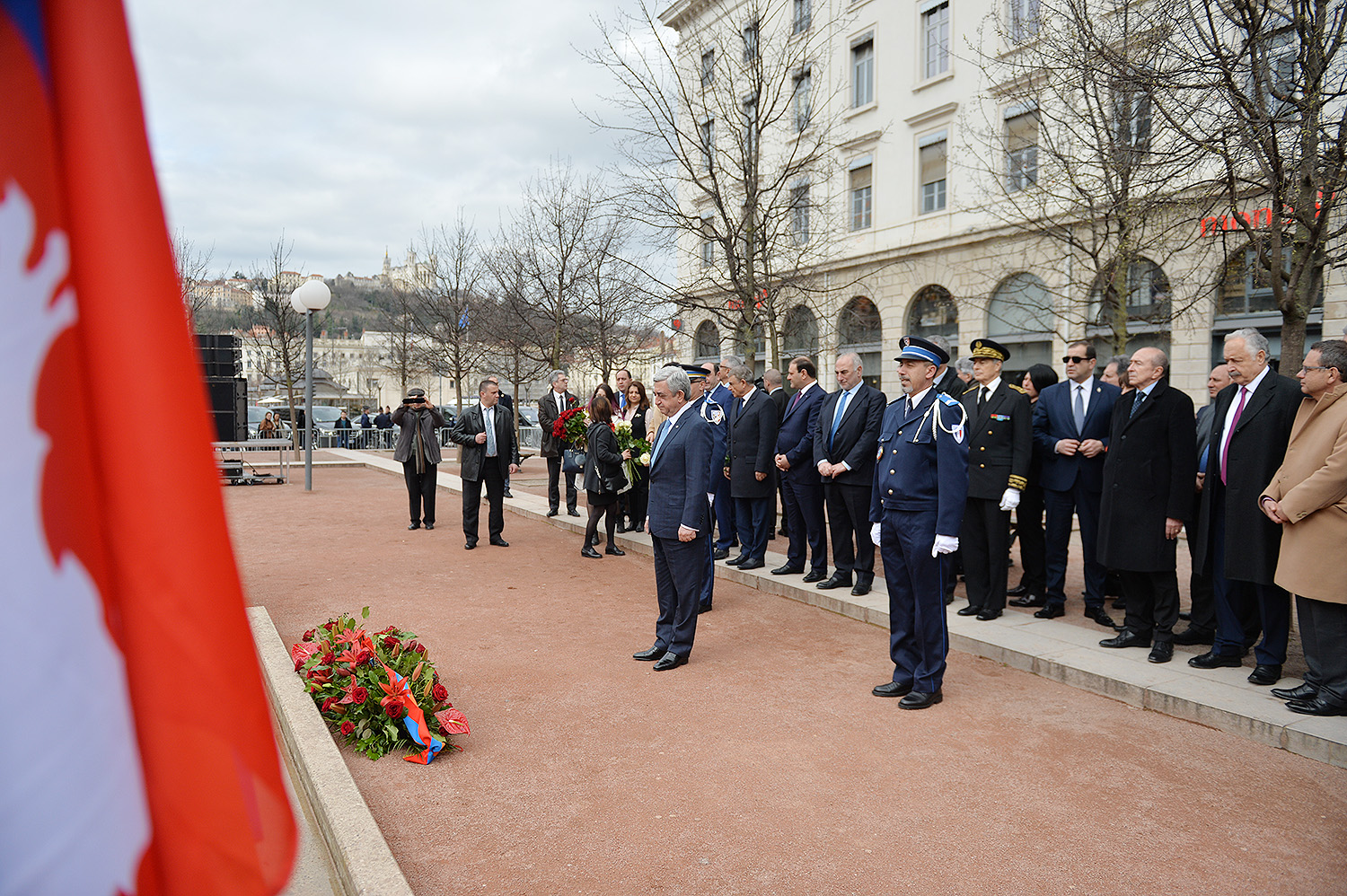 Պաշտոնական այցով Ֆրանսիայի Հանրապետությունում գտնվող Նախագահ Սերժ Սարգսյանն այսօր Փարիզից մեկնել է հայաշատ Լիոն, որտեղ հանդիպում է ունեցել քաղաքապետ Ժերար Կոլոնի հետ: Մինչ այդ Հանրապետության Նախագահի գլխավորած պատվիրակությունը այցելել է քաղաքի «Բելկուրի» հրապարակ և ծաղկեպսակ դրել Հայոց ցեղասպանության զոհերի հիշատակին նվիրված հուշարձանին` հարգանքի տուրք մատուցել Ցեղասպանության զոհերի հիշատակին: