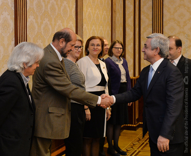Նախագահ Սերժ Սարգսյանն այսօր ընդունել է ս.թ. ապրիլի 2-ին կայանալիք ՀՀ խորհրդարանական ընտրությունների ընթացքում դիտորդական առաքելություն իրականացնելու նպատակով Հայաստան ժամանած Եվրոպական խորհրդարանի պատգամավորների պատվիրակությանը: Հանրապետության Նախագահը ողջունել է հյուրերին, որոնցից ոմանք, Նախագահի խոսքով, նախկինում եղել են Հայաստանում, ծանոթ են մեր երկրում տեղի ունեցող իրադարձություններին, բարեփոխումների ընթացքին: