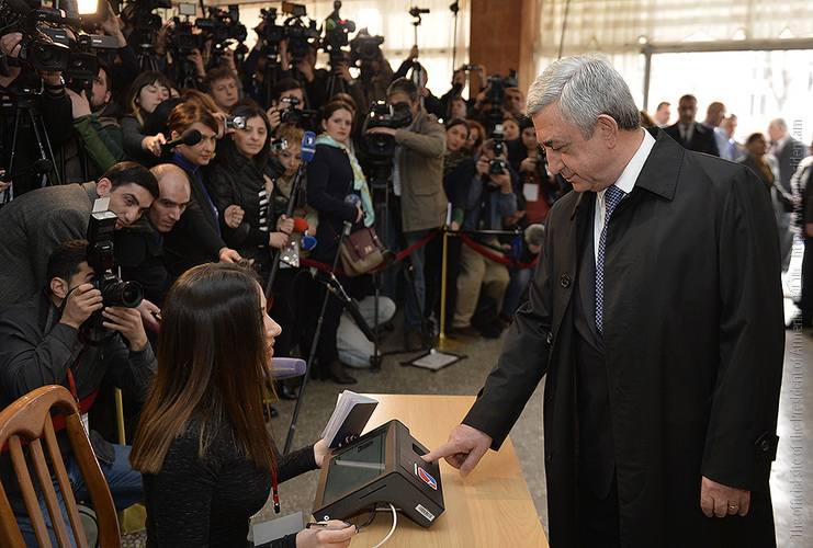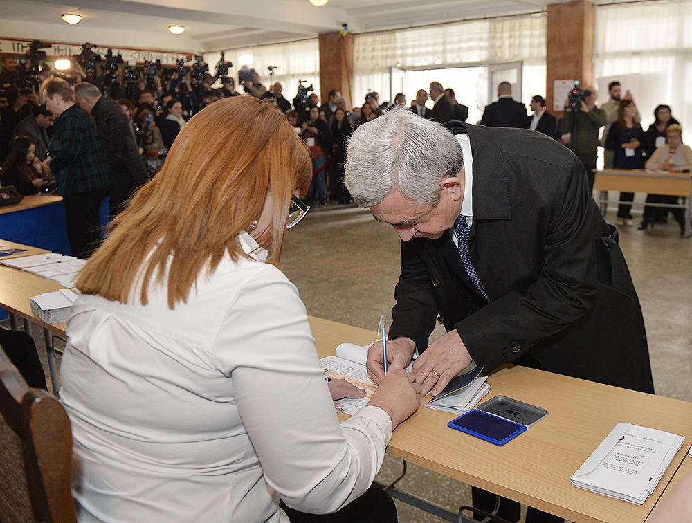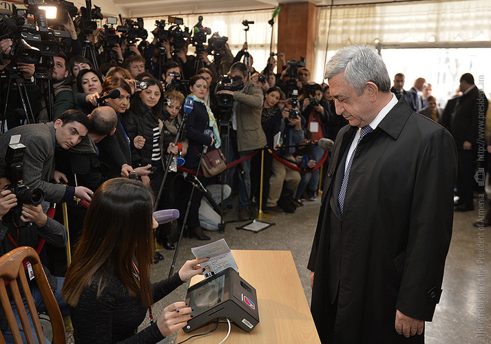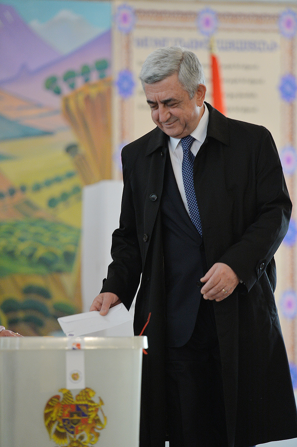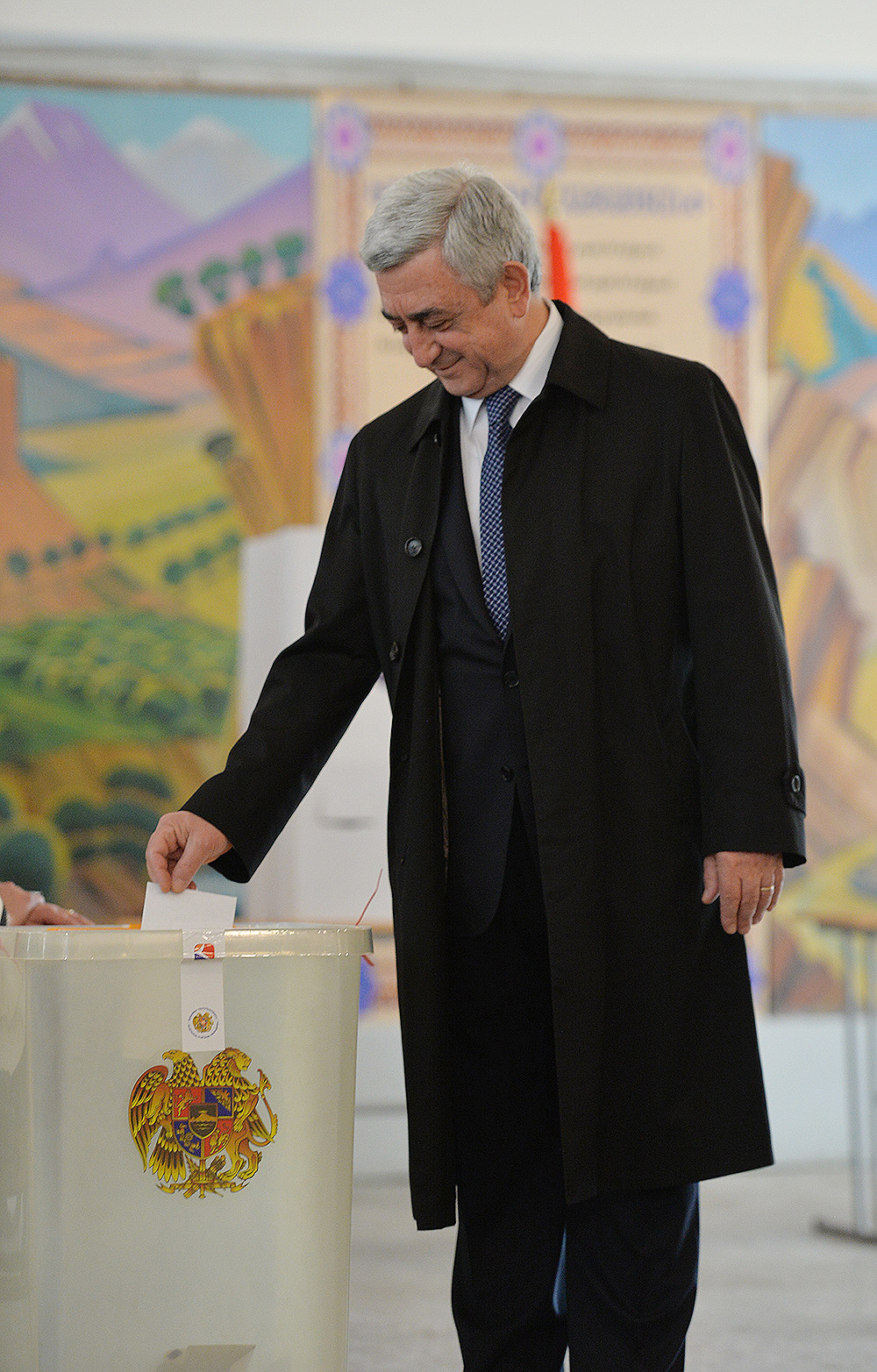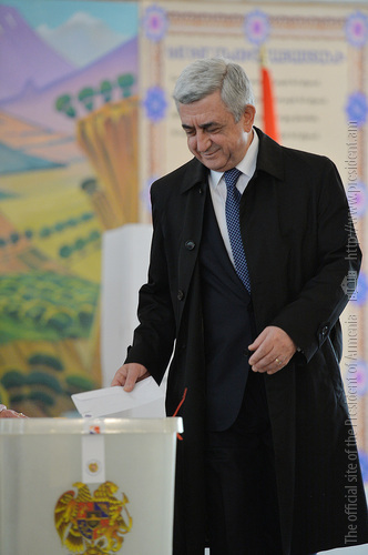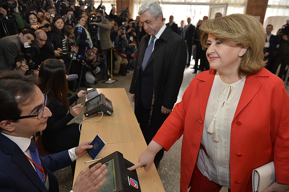 Նախագահ Սերժ Սարգսյանը տիկնոջ՝ Ռիտա Սարգսյանի հետ այսօր առավոտյան մայրաքաղաքի թիվ 9/18 ընտրատեղամասում մասնակցել է ՀՀ Ազգային ժողովի ընտրությունների քվեարկությանը: