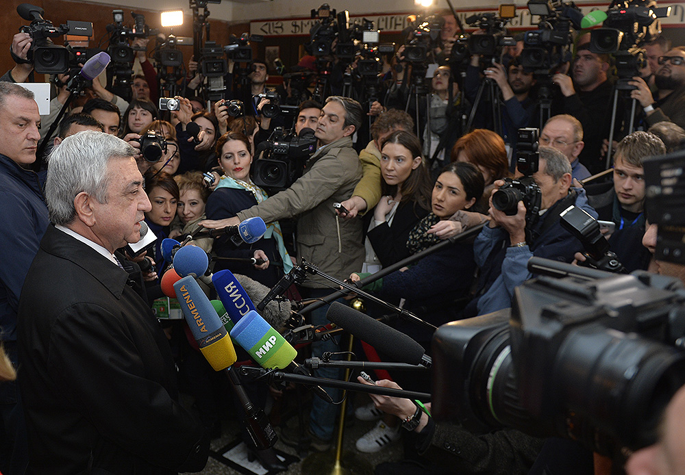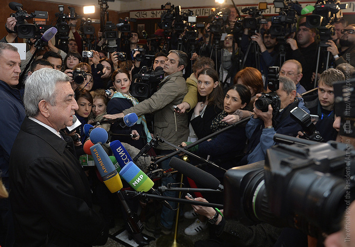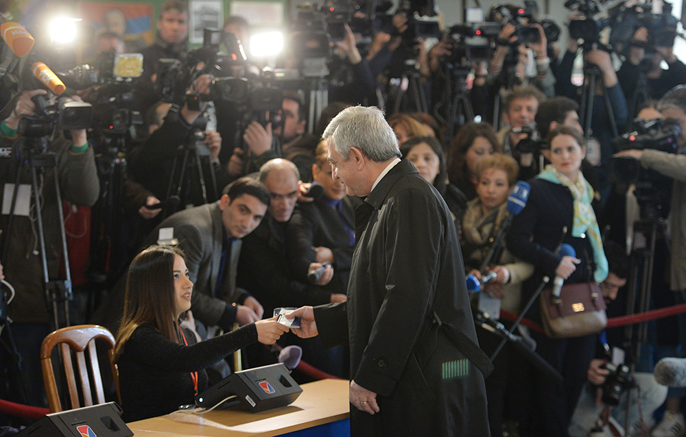 Քվեարկությունից հետո պատասխանելով լրագրողների հարցերին, թե քվեաթերթիկը քվեատուփի մեջ գցելիս ի՞նչ մտածեց կամ ի՞նչ հիշեց՝ զինվորների՞ն, սահմա՞նը, Հանրապետության Նախագահը ասել է. «Մտածեցի, որ խաղաղությունից թանկ բան չկա, և ամեն ինչ անելու ենք, որպեսզի մեր սահմաններին հանդարտություն լինի, և այդ սահմանները լինեն անձեռնմխելի»:
