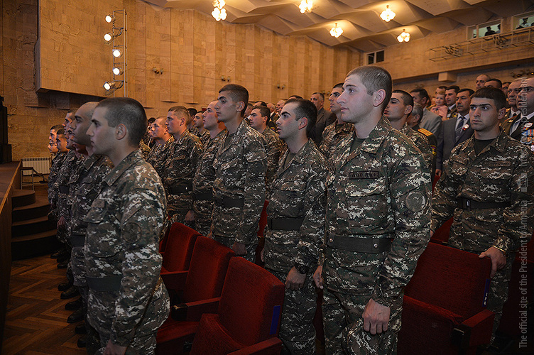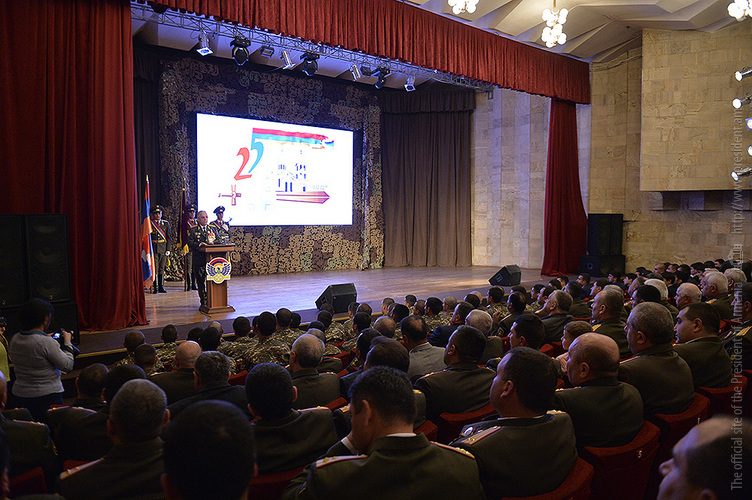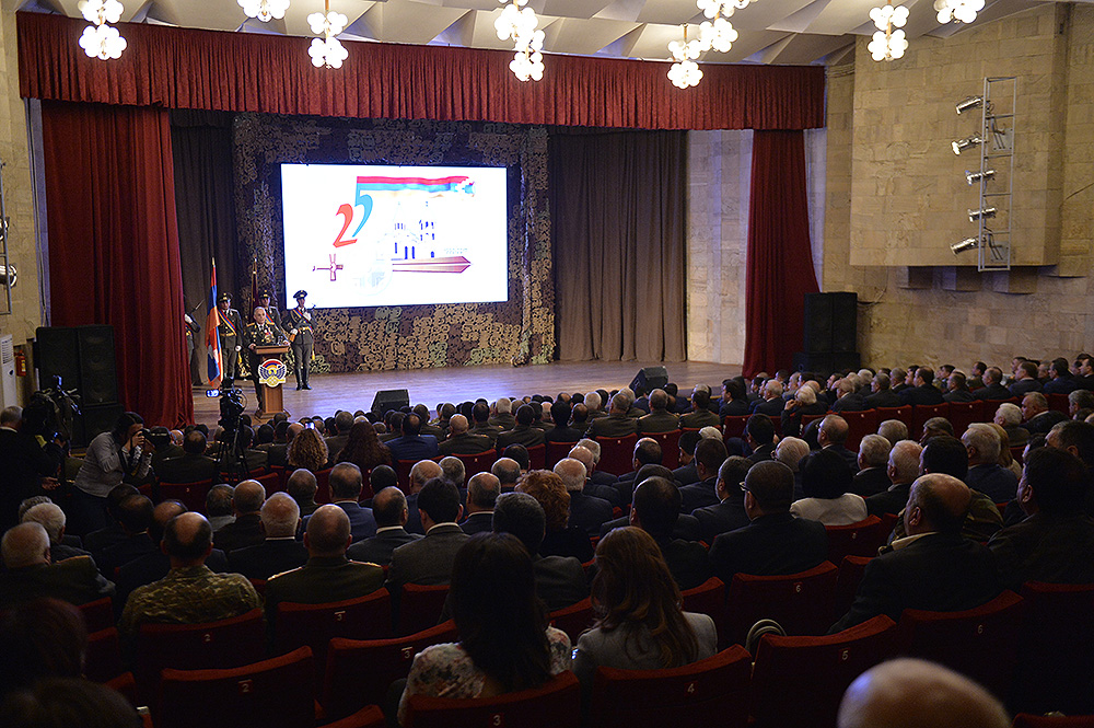 Հաղթանակի տոնի, Արցախի Հանրապետության պաշտպանության բանակի կազմավորման և Շուշիի ազատագրման 25-րդ տարեդարձին նվիրված տոնական միջոցառումներին մասնակցելու նպատակով Արցախի Հանրապետությունում գտնվող Նախագահ Սերժ Սարգսյանն այսօր երեկոյան Արցախի Հանրապետության մշակույթի և երիտասարդության պալատում ներկա է գտնվել տոների առթիվ կազմակերպված հանդիսավոր երեկոյին:
