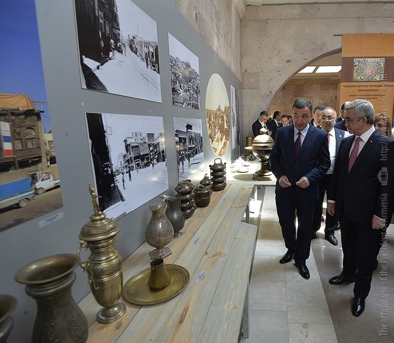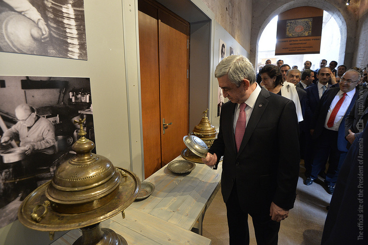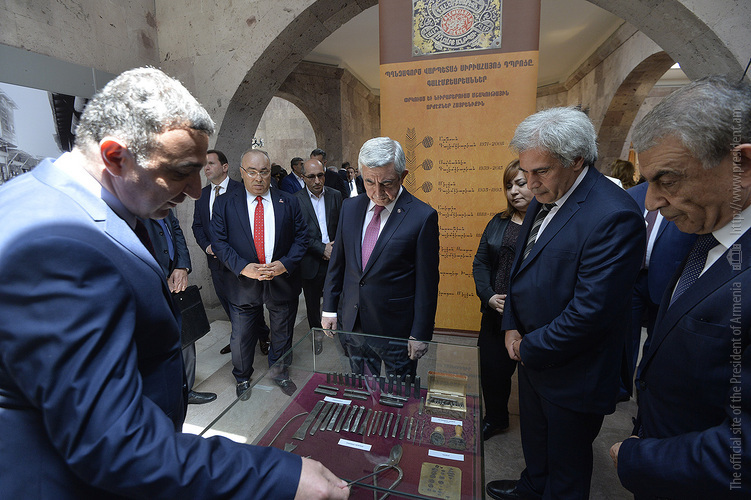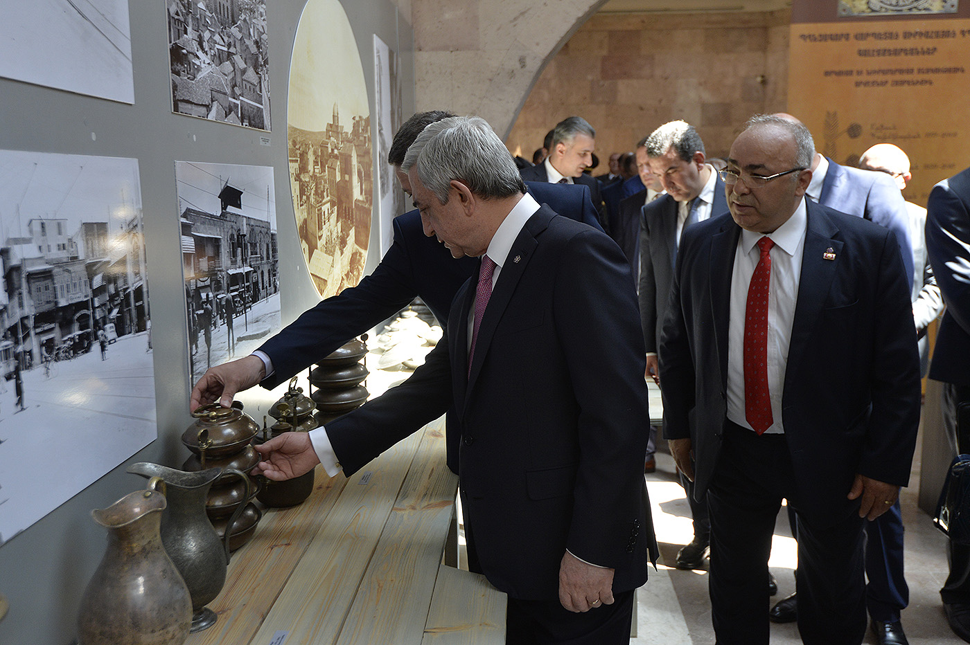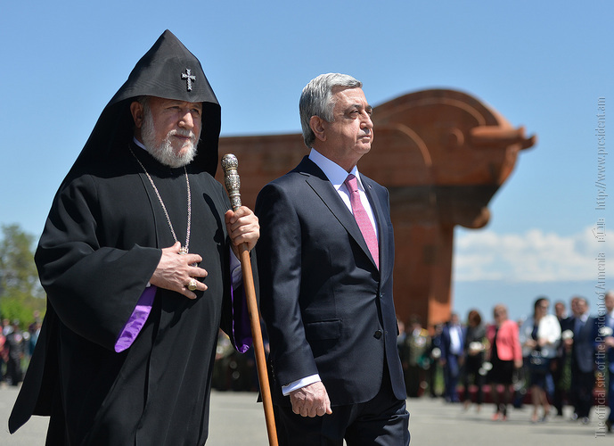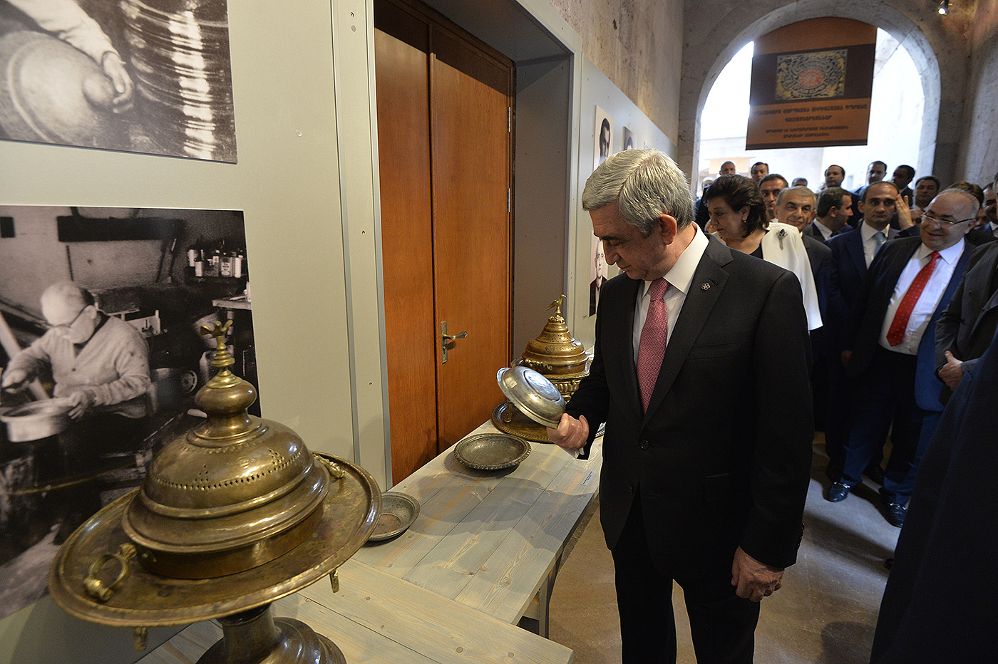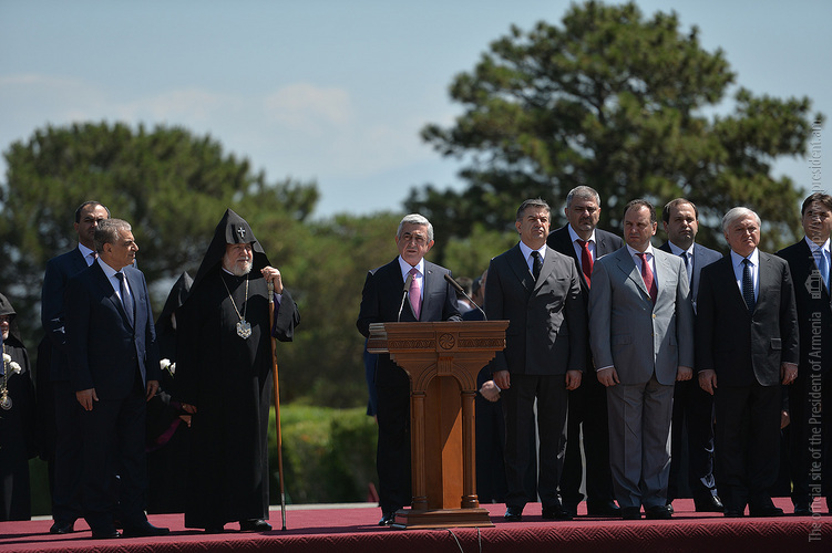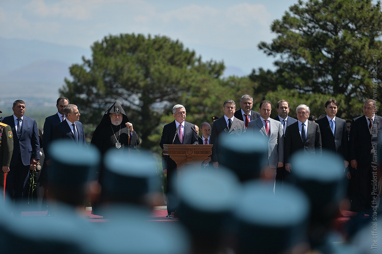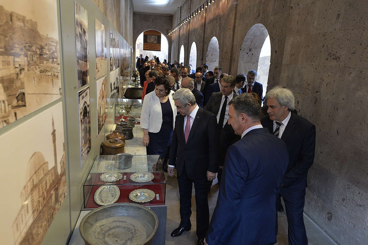 Նախագահ Սերժ Սարգսյանն այսօր Սարդարապատի հերոսամարտի հուշահամալիրում Ն.Ս.Օ.Տ.Տ. Գարեգին Բ Ամենայն Հայոց Կաթողիկոսի, Հանրապետության բարձրագույն ղեկավարության և հուշահամալիր այցելած հյուրերի հետ մասնակցել է Հանրապետության տոնին նվիրված տոնակատարությանը: Հանրապետության Նախագահը ծաղկեպսակ է դրել Սարդարապատի ճակատամարտի հերոսների հիշատակը հավերժացնող հուշակոթողին և հարգանքի տուրք մատուցել: Զորահանդեսի մասնակիցներին ողջունելուց և Պատվո նվագախմբի հանդիսավոր քայլերթը ընդունելուց հետո Նախագահը միջոցառման մասնակիցների հետ Սարդարապատի հուշահամալիրի Հայոց ազգագրության և ազատագրական պայքարի պատմության ազգային թանգարանում դիտել է «Գալէմքեարեաններ պղնձագործ վարպետաց սիրիահայոց դպրոց. փրկված և Հայրենիքին նվիրաբերված մշակութային արժեքներ» խորագրով ցուցահանդեսը: